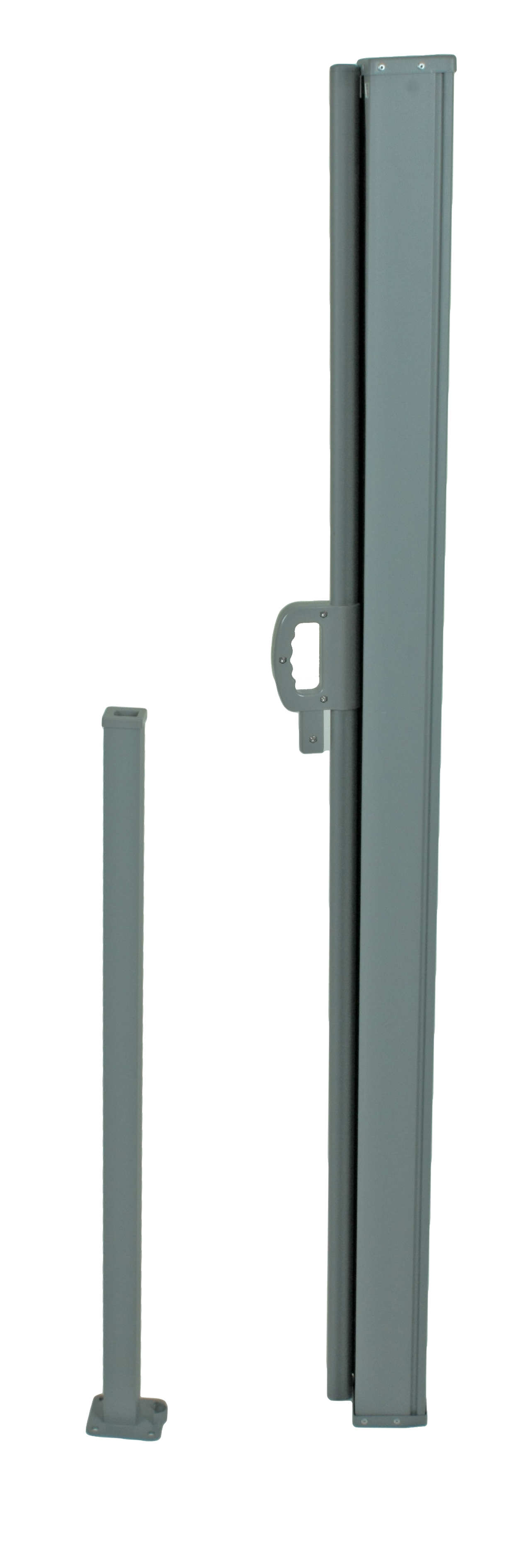 Die Markise wird am Griff ein- und ausgezogen und wird bei Bedarf durch die Federrolle mechanisch wieder aufgerollt. Zum Einhängen liegt eine praktische Säule bei,