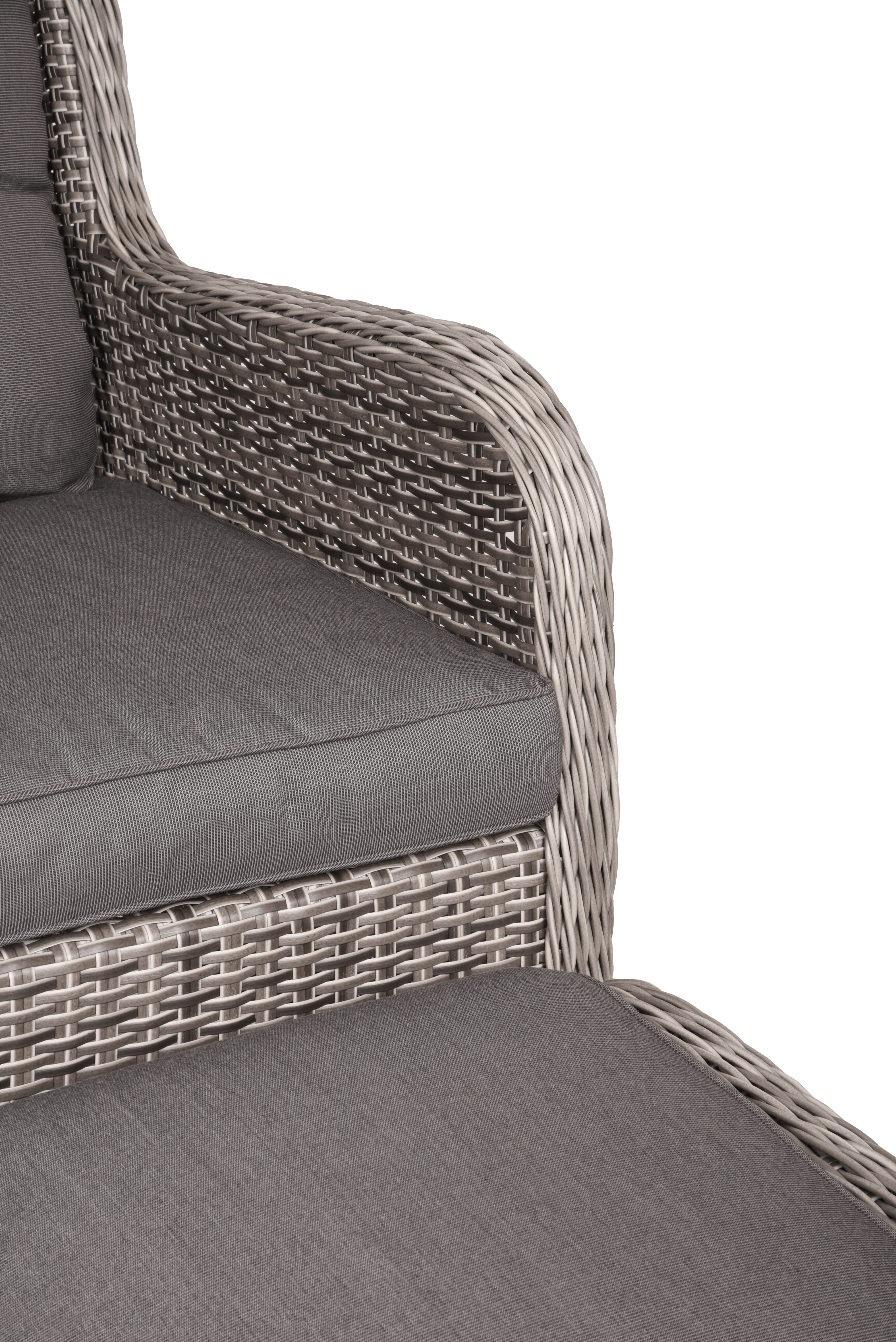 Das Set ist aus grauem Kunststoffgeflecht und Stahl gefertigt und bringt eine zeitlose Eleganz in Ihren Außenbereich. Die langlebigen Materialien garantieren eine lange Lebensdauer und durch das moderne Design passt das Set VALENCIA perfekt in jeden Außenbereich. Überzeugen Sie sich selbst von der hohen Qualität dieses Sets und genießen Sie die Freude, die es in Ihren Außenbereich bringt.