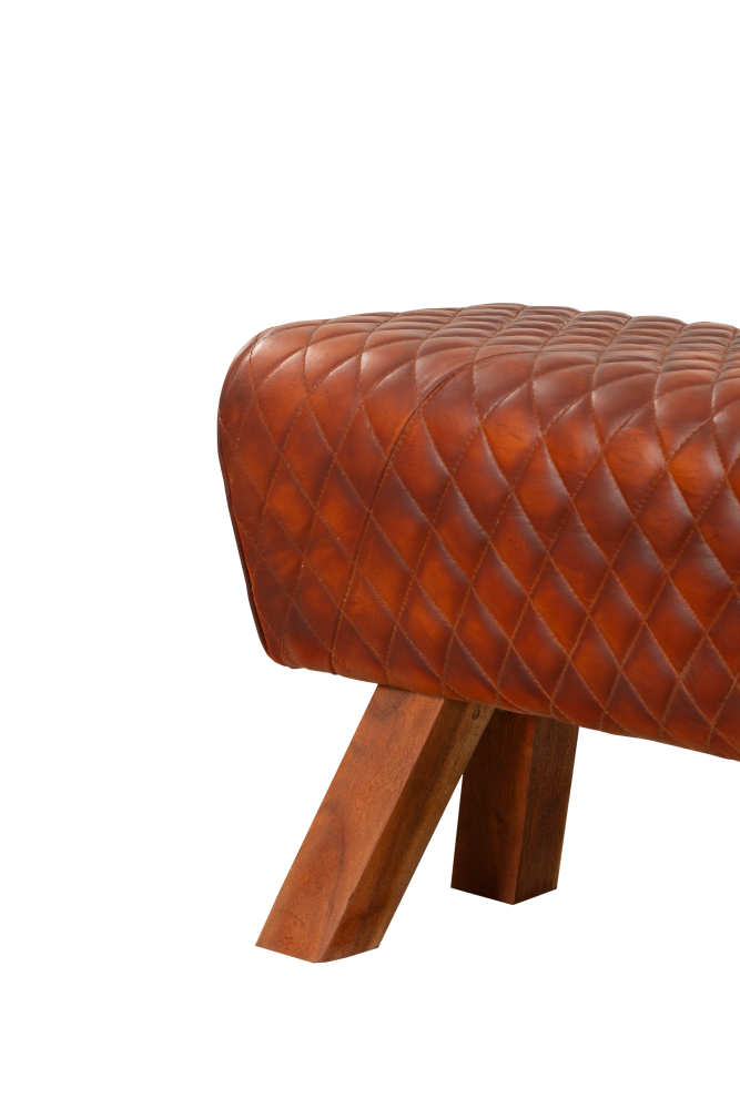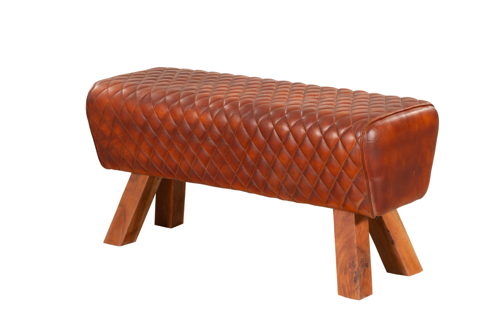 Unsere extravaganter Sitzbank BHILAI besticht durch den stimmigen und modernen Materialmix aus Echtleder (mit edlem Rauten-Muster) und Holz (Mango massiv, recycelt).