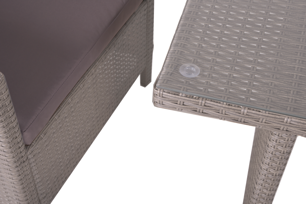 Die Sitzgruppe SEVILLIA ist eine moderne und elegante Wahl für jeden, der eine stilvolle und bequeme Sitzgelegenheit für den Garten, den Balkon oder die Terrasse sucht. Die Sitzgruppe besteht aus einem Tisch mit einer gläsernen Tischplatte, zwei Sesseln, zwei Hockern und einem 3-Sitzer Sofa - alle Elemente sind aus robustem grauen Kunststoffgeflecht und haben ein schwarzes Stahlgestell. Die Sitzflächen und Rückenlehnen der Sessel, Hocker und des Sofas sind mit bequemen und pflegeleichten Kissen aus Polyester in der Farbe Dunkelgrau ausgestattet. Die Kissen lassen sich einfach abnehmen und bei Bedarf waschen. Das Kunststoffgeflecht ist witterungsbeständig und pflegeleicht, so dass die Sitzgruppe einfach zu reinigen und jahrelang haltbar ist. Mit ihrer großzügigen Sitzfläche bietet die Sitzgruppe SEVILLIA Platz für mehrere Personen und ist somit perfekt für Gartenpartys oder entspannte Abende im Freien. Die Montage der Sitzgruppe ist einfach und unkompliziert und erfordert keine besonderen Werkzeuge oder Kenntnisse. Mit ihrem geringen Gewicht und den kompakten Abmessungen ist die Sitzgruppe auch leicht zu bewegen und zu verstauen.
