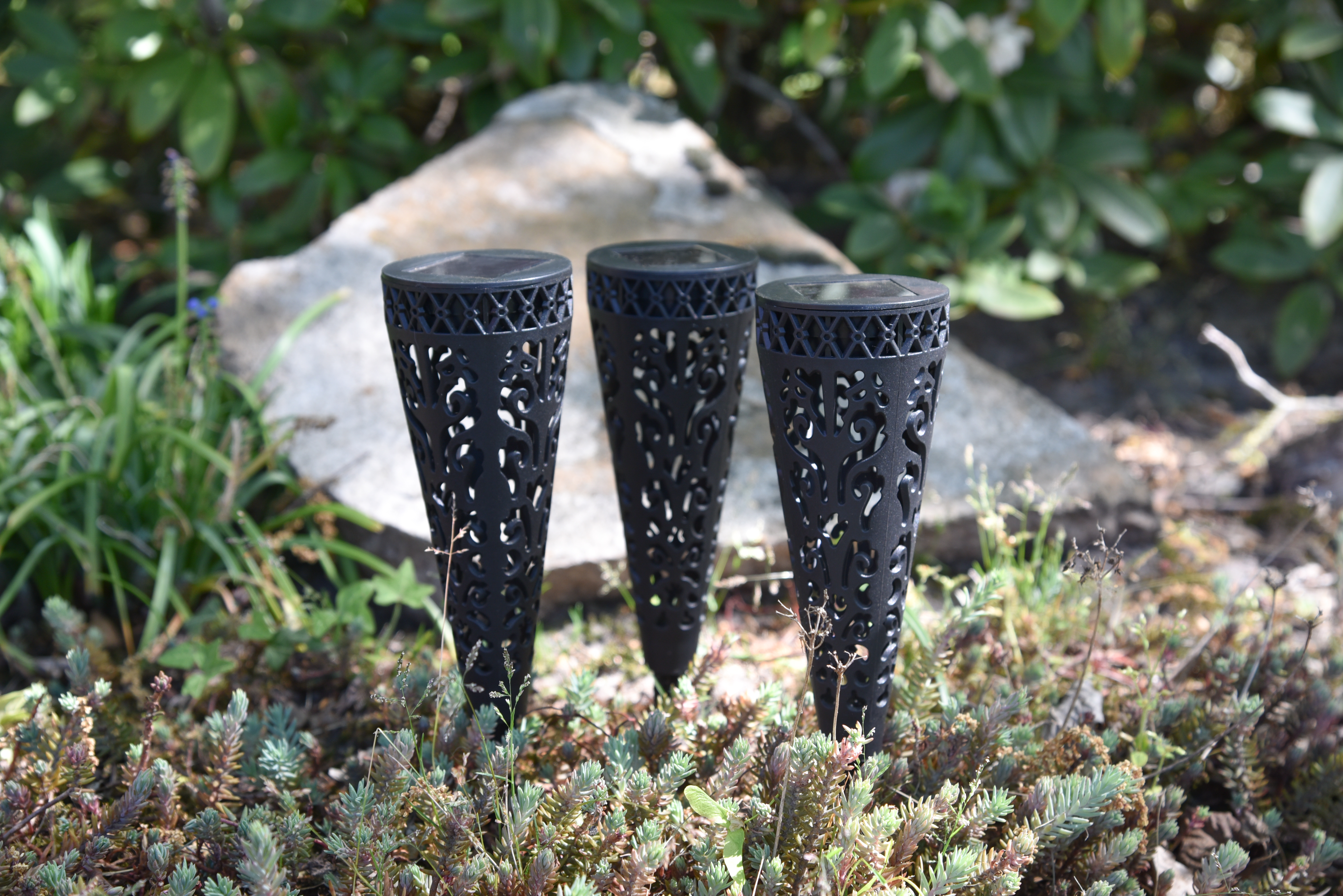 Die Solarleuchten sind aus robustem schwarzen PP (Polypropylen) gefertigt und verfügen jeweils über eine warmweiße LED, die ein sanftes und einladendes Licht abstrahlt. Das schwarze Design fügt sich nahtlos in verschiedene Außendekorationsstile ein.