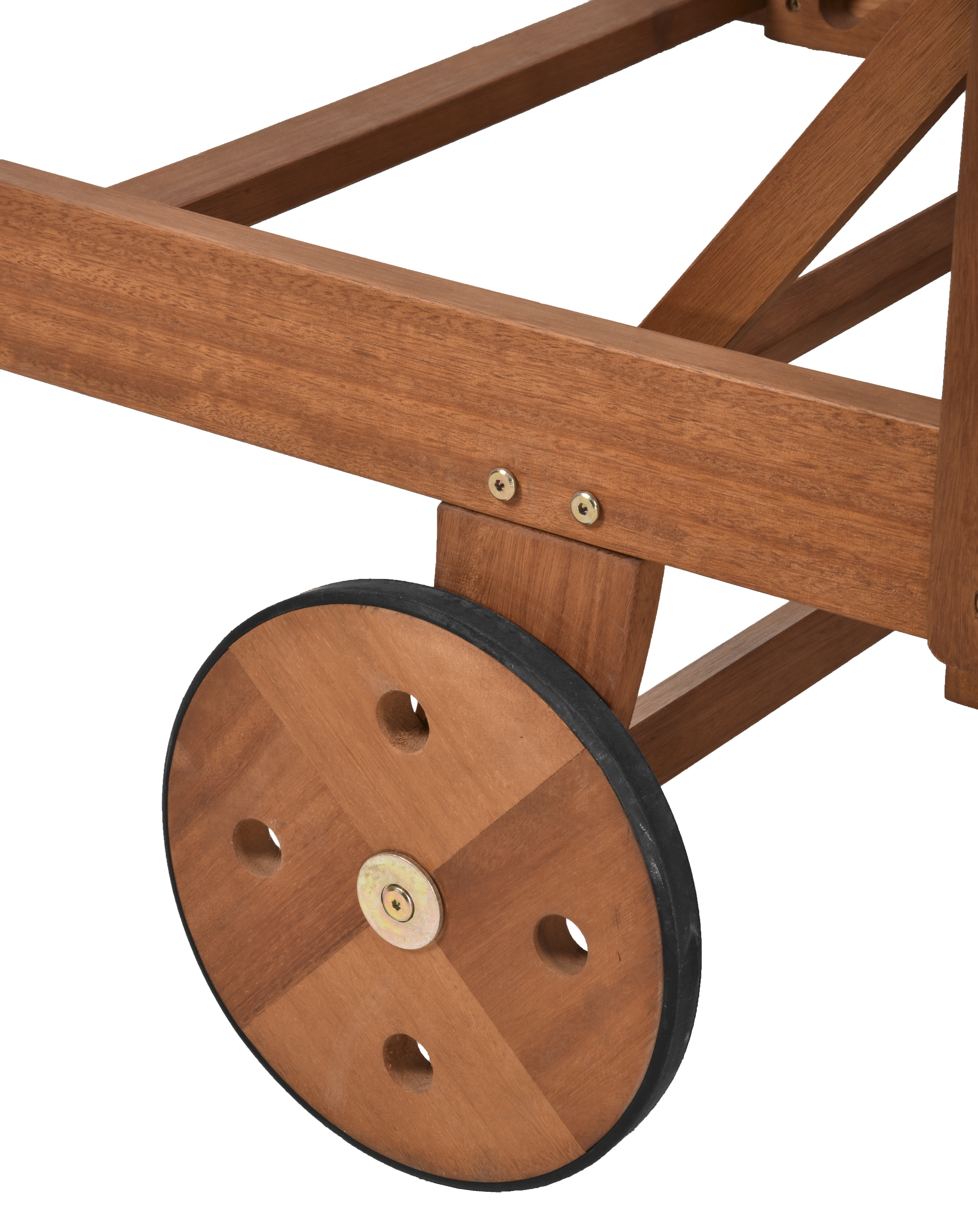 Das Holz der Sonnenliege wurde speziell geölt, um es vor den Elementen zu schützen und es länger haltbar zu machen.