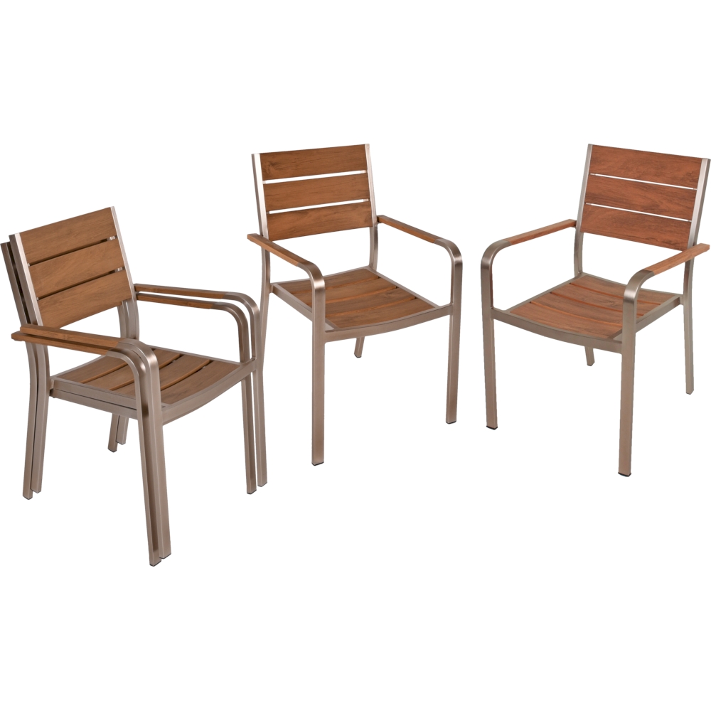 Mit einem Aluminiumgestell in einem edlen Champagnerton und Sitz-, Rücken- und Armlehnen aus Non-Wood in Teak-Optik bietet er eine perfekte Kombination aus Eleganz und Funktionalität.
