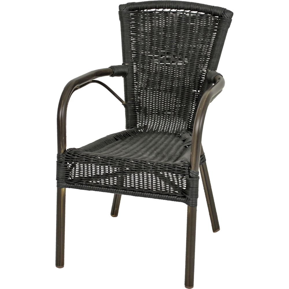 Das schwarze Kunststoffgeflecht verleiht dem Stuhl eine moderne Eleganz und ist zudem pflegeleicht und witterungsbeständig.