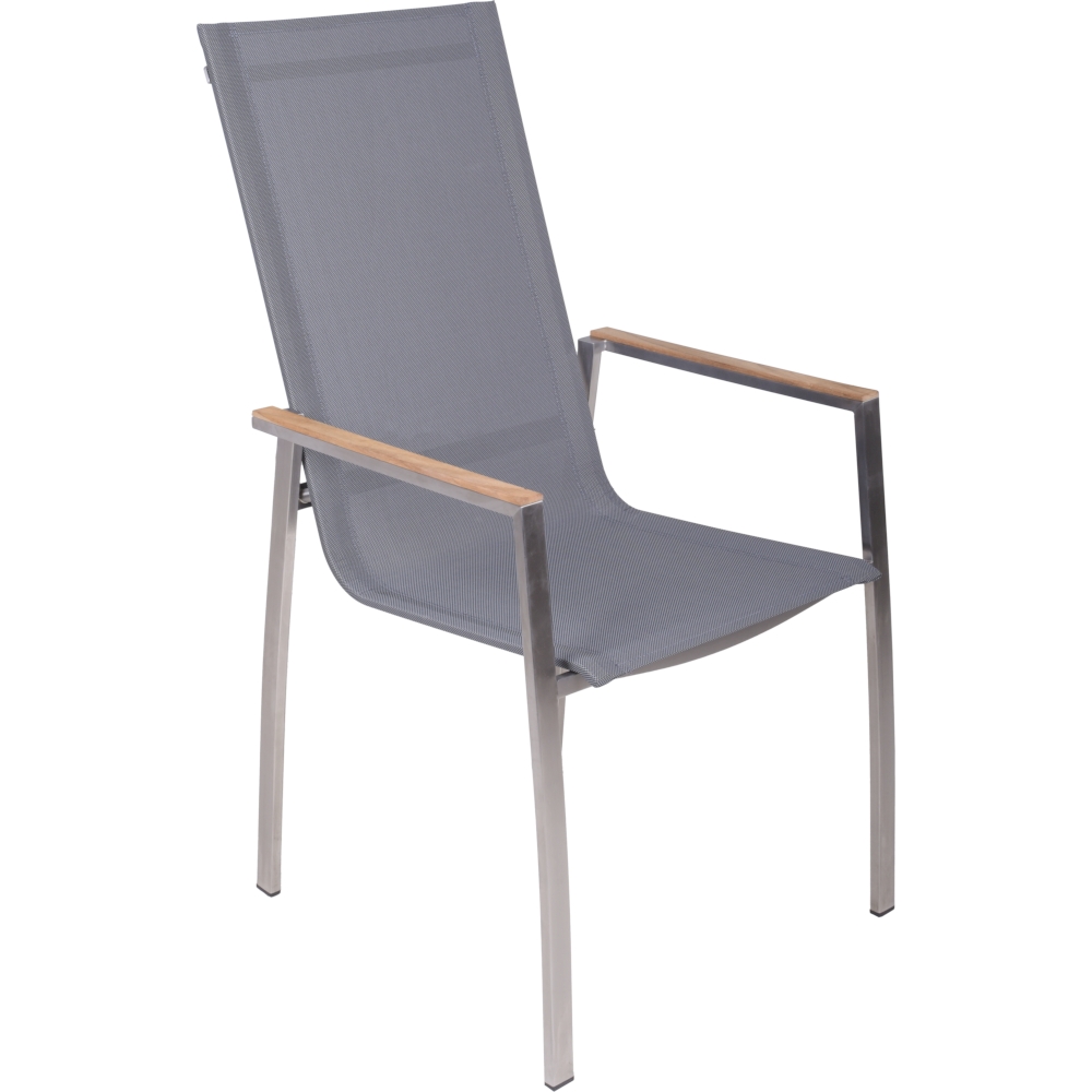 Die Armlehnen aus Teakholz verleihen dem Stuhl eine natürliche Note und sind gleichzeitig bequem.