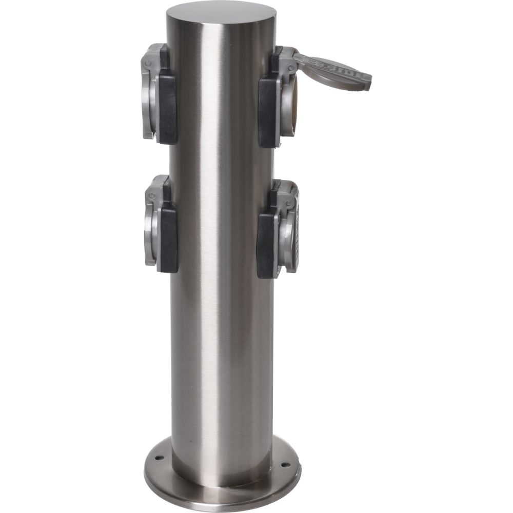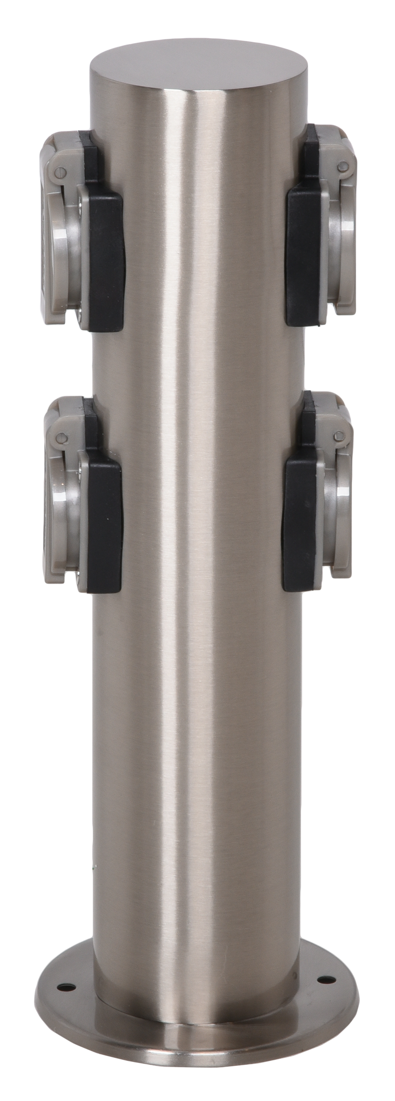 Infotext 1: runder Edelstahlkörper, inkl. 2 Steckdosen