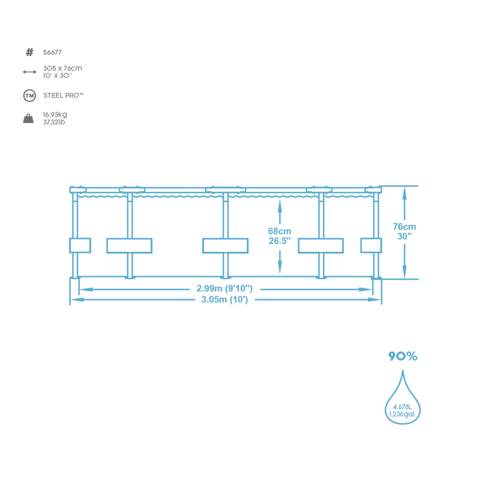 Infotext 1: Wasserkapazität zu 90% gefüllt 4.678 Liter, Poolfolie aus robustem DuraPlus-Material