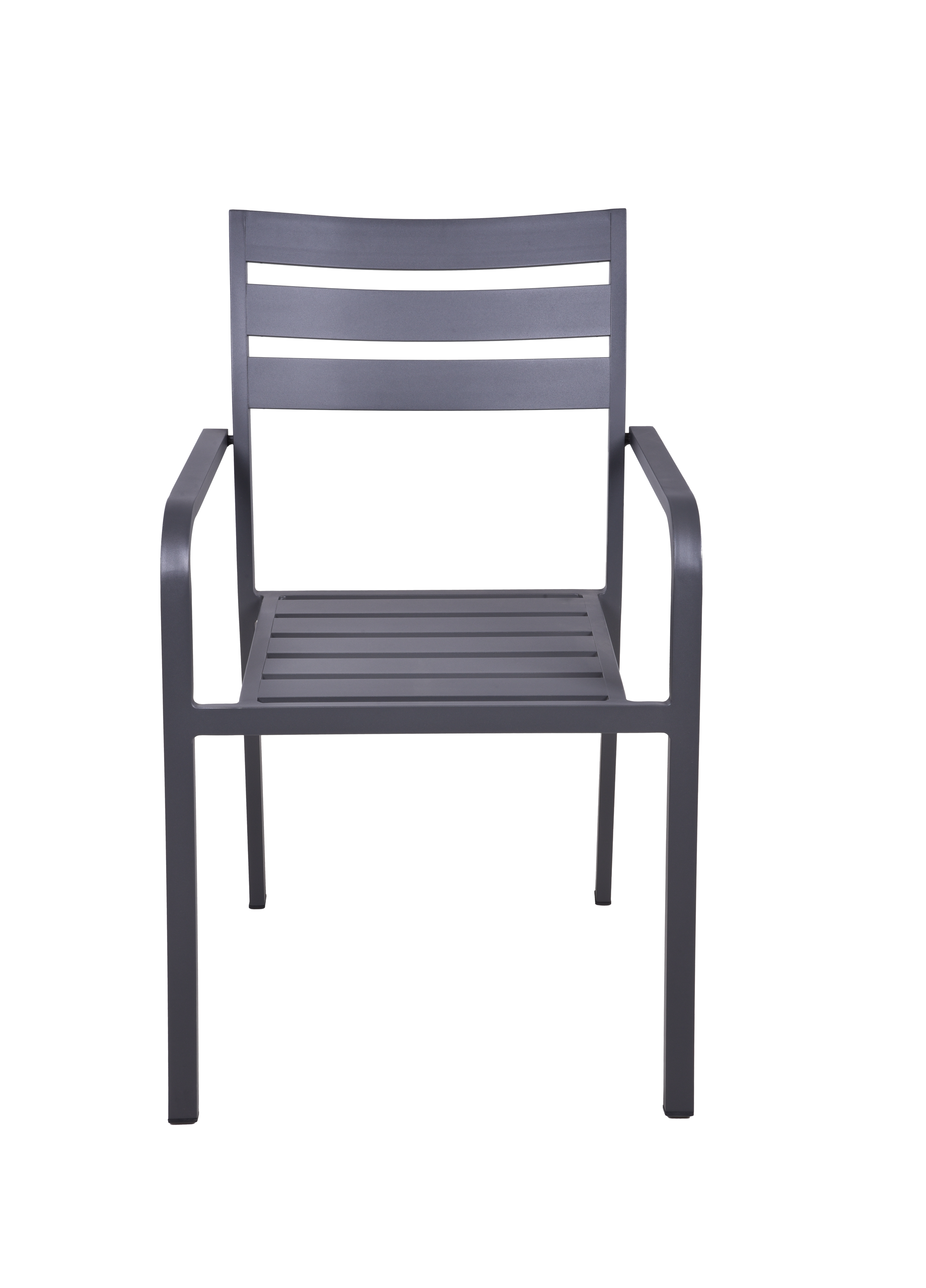 Der Stuhl "TREVISO" in eleganter Anthrazit-Pulverbeschichtung und Aluminium-Gestell bietet eine optimale Kombination aus Stil und Funktionalität.