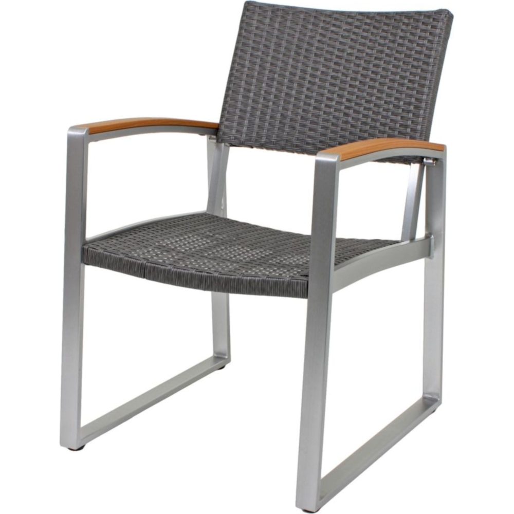 Der Rahmen des Stuhls ist aus robustem grauem Aluminium gefertigt, was nicht nur für eine stabile Konstruktion sorgt, sondern auch für Wetterbeständigkeit und Langlebigkeit. Die Sitz- und Rückenfläche besteht aus grauem Kunststoffgeflecht, das nicht nur ästhetisch ansprechend ist, sondern auch bequemen Sitzkomfort bietet.