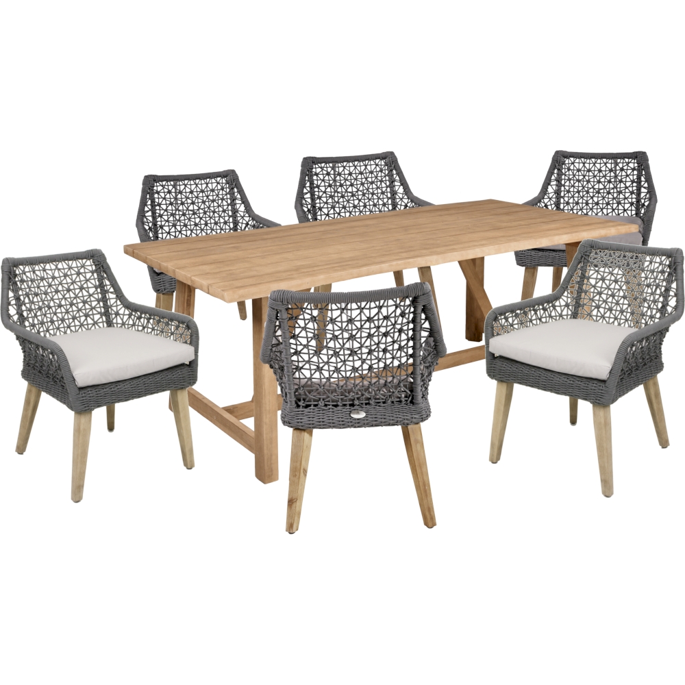 Das zeitlose Design des Gartentisches fügt sich harmonisch in verschiedene Gartenstile ein und verleiht Ihrem Außenbereich eine elegante Note.