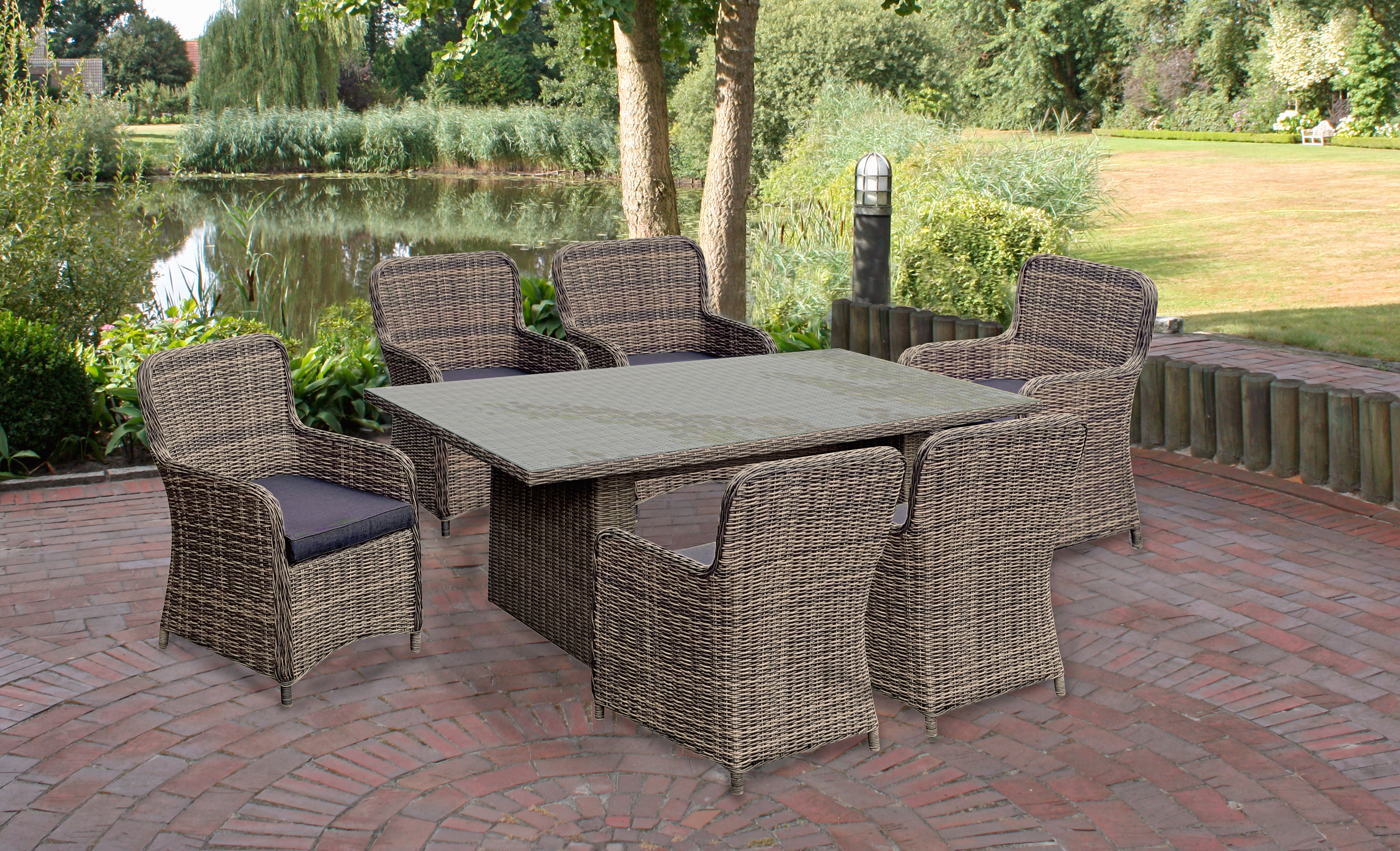 Diese Tischgruppe eignet sich ideal für gesellige Zusammenkünfte im Freien und schafft eine einladende Atmosphäre. Die Tischgruppe BORDEAUX vereint Qualität, Komfort und Ästhetik und ist eine perfekte Wahl für Ihre Terrasse, Ihren Garten oder Ihren Balkon. Genießen Sie stilvolle Momente im Freien mit diesem hochwertigen Möbelensemble.