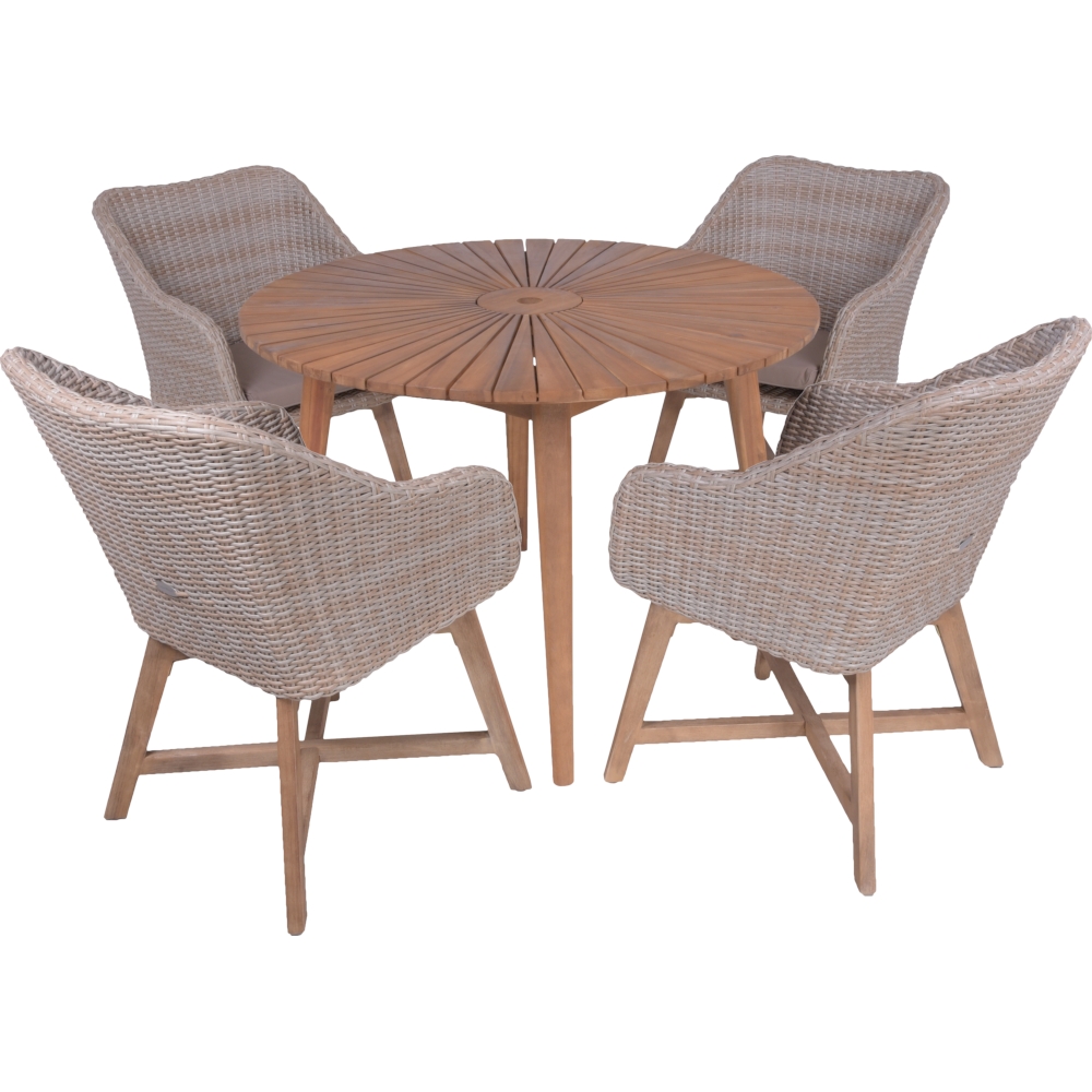 Kunststoffgeflecht / Akazie FSC 100%, 1 × Tisch 985272 | 4 × Sessel 985160