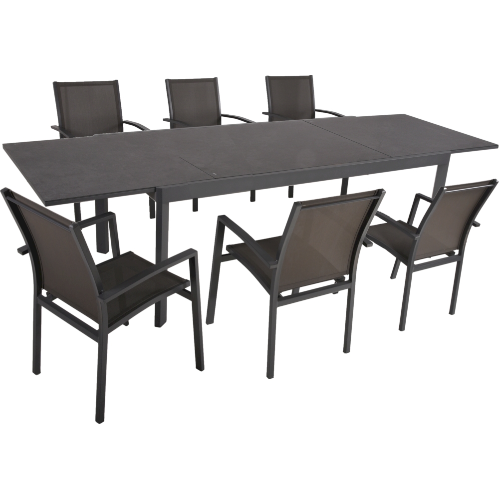 Die Tischgruppe NEREA ist eine elegante und praktische Lösung, um Ihren Innen- oder Außenbereich stilvoll und komfortabel zu gestalten. Dieses Set besteht aus einem Ausziehtisch NEREA, der sich von 2 Metern auf beeindruckende 3 Meter verlängern lässt, und sechs Stapelstühlen ELENA.