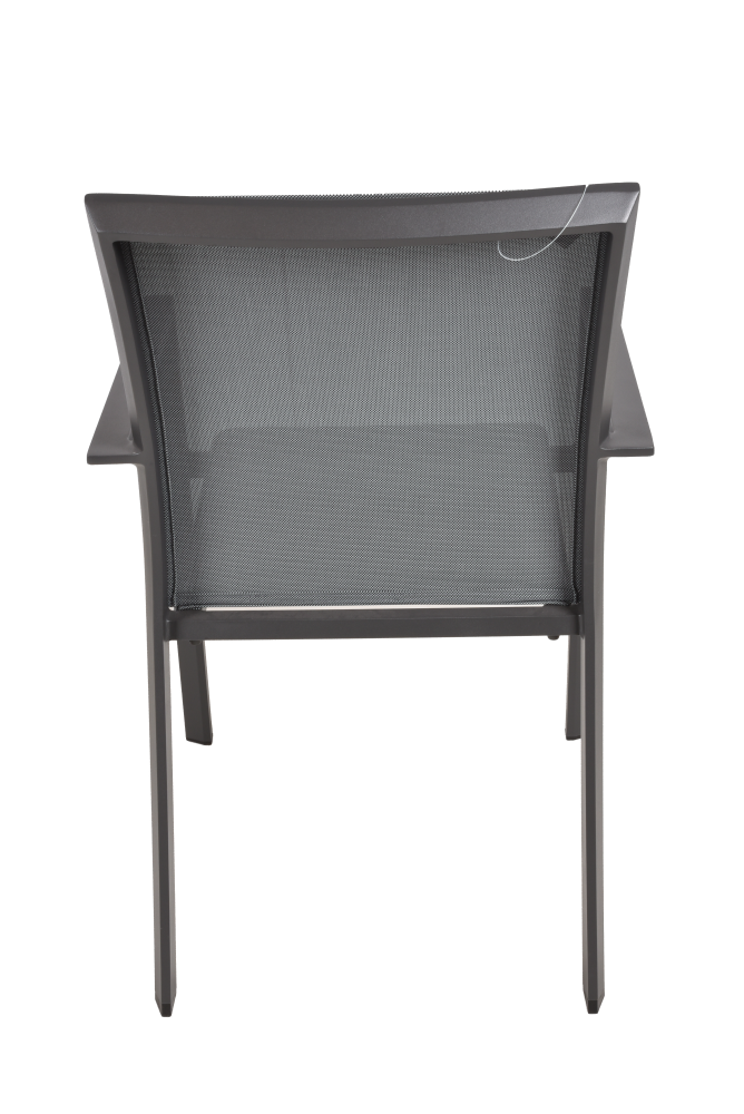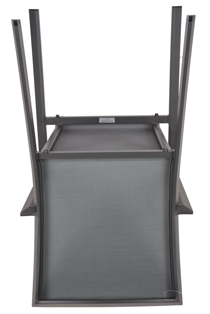 Die acht Stapelstühle RANA sind speziell für platzsparende Lagerung konzipiert und verfügen über ein pulverbeschichtetes dunkelgraues Aluminiumgestell und Sitzflächen aus mittelgrauem Kunststoffgewebe mit einem 2x2-Muster. Dieses Gestell ist leicht und dennoch stabil und sorgt für Langlebigkeit. Die Stühle können einfach gestapelt und gelagert werden, wenn sie nicht in Gebrauch sind.
