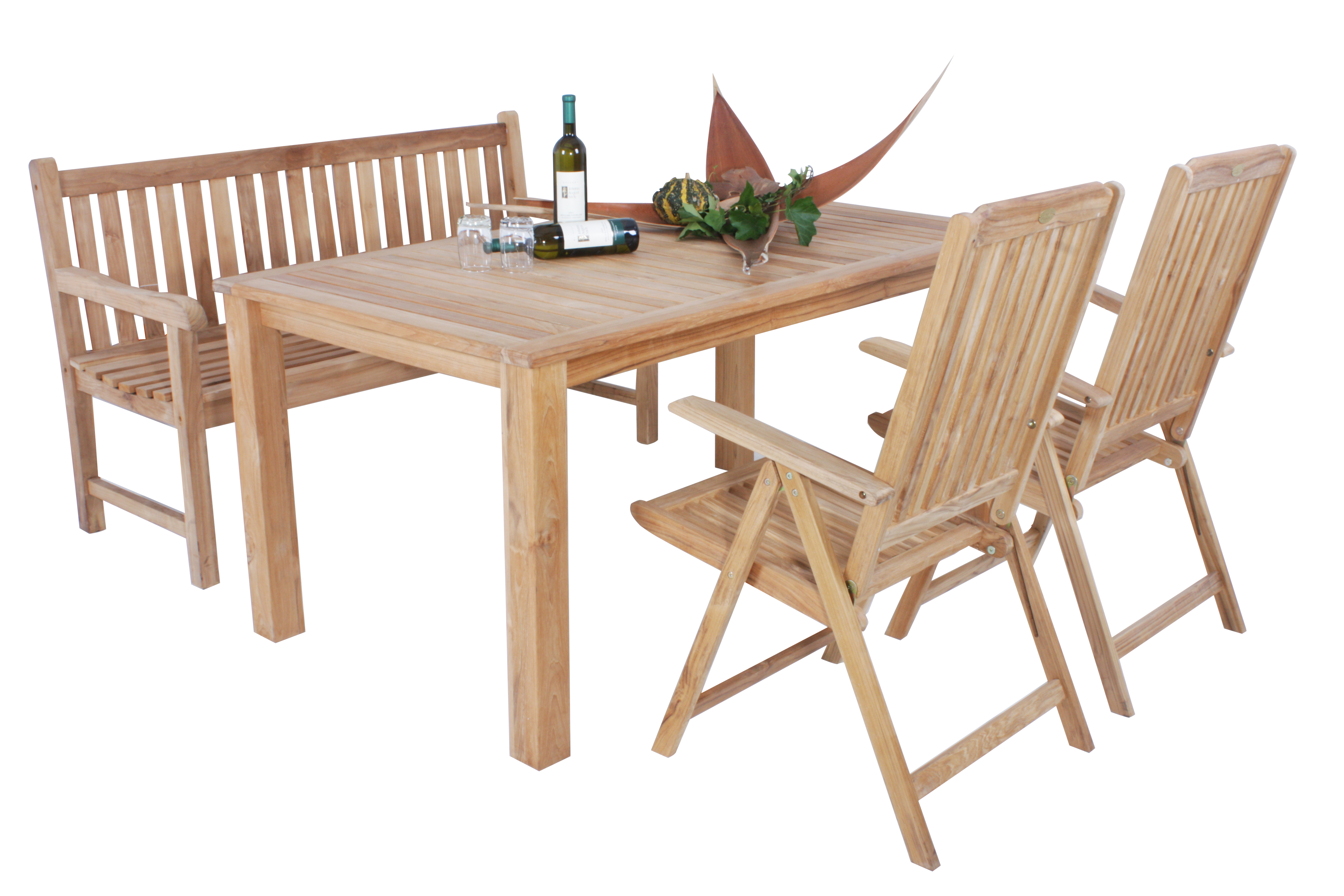 Die sechs mitgelieferten Hochlehner SOLO bestehen ebenfalls aus Teakholz und sind mit einer 5-fach verstellbaren Rückenlehne ausgestattet. Dies ermöglicht es Ihnen, die perfekte Sitzposition zu finden, sei es beim Essen oder einfach beim Entspannen im Freien.