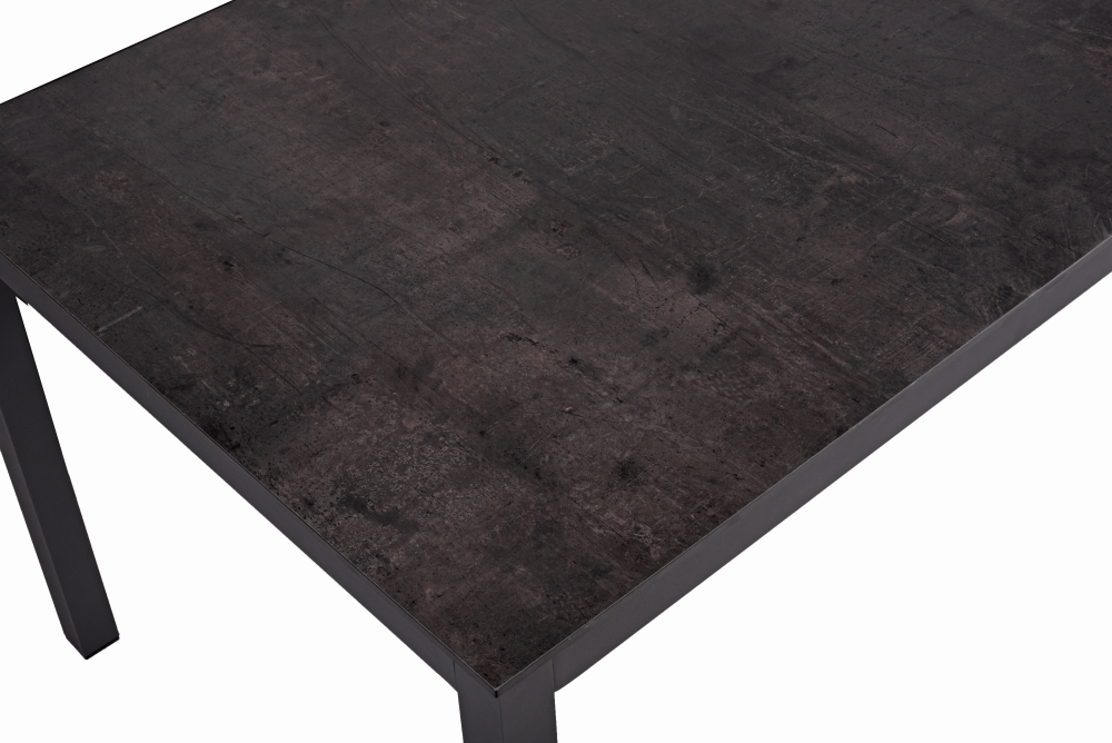 Der Tisch SOPHIA ist aus Aluminium und Kunststoff HPL in anthrazit gefertigt, was ihm eine langlebige und pflegeleichte Oberfläche verleiht.