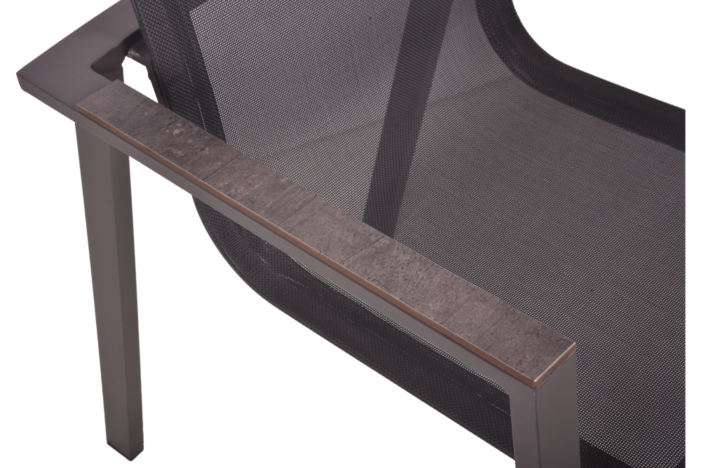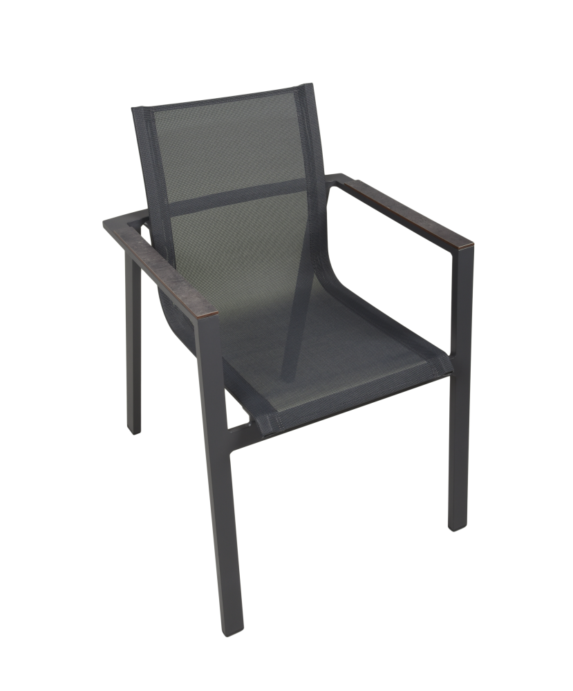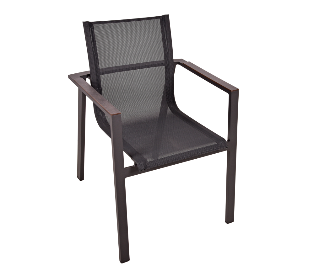 Die Stapelstühle SOPHIA sind aus strapazierfähigem Aluminium gefertigt, das in pfefferschwarz pulverbeschichtet ist und mit einem strapazierfähigen Kunststoffgewebe 2x2 in pfefferschwarz bezogen ist.