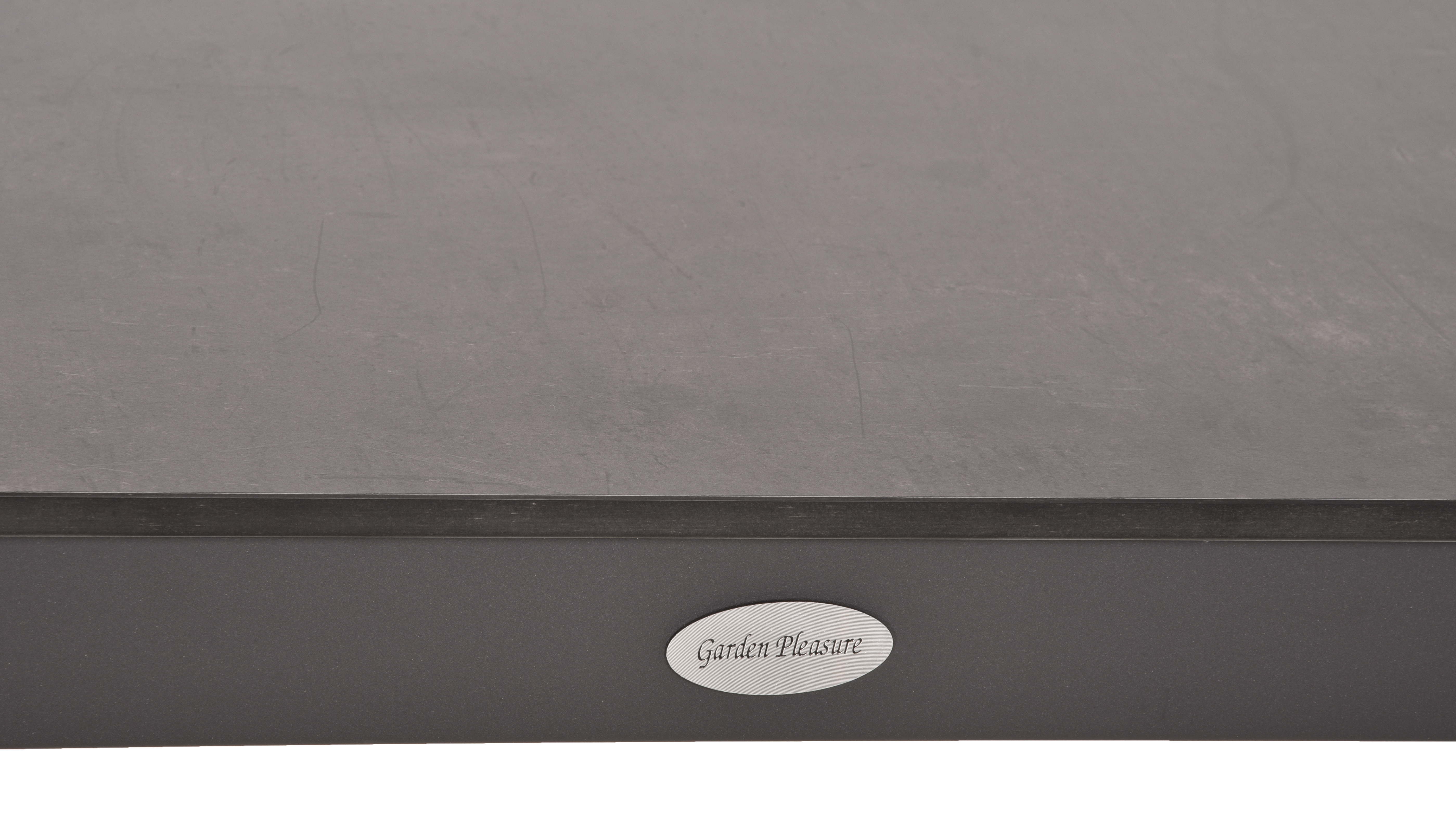 Der Tisch SOPHIA besteht aus Aluminium mit einer Kunststoff High-Pressure Laminate (HPL) Tischplatte in einem Anthrazit-Farbton. Diese Materialkombination verleiht dem Tisch nicht nur eine moderne Ästhetik, sondern auch Stabilität und Wetterbeständigkeit.