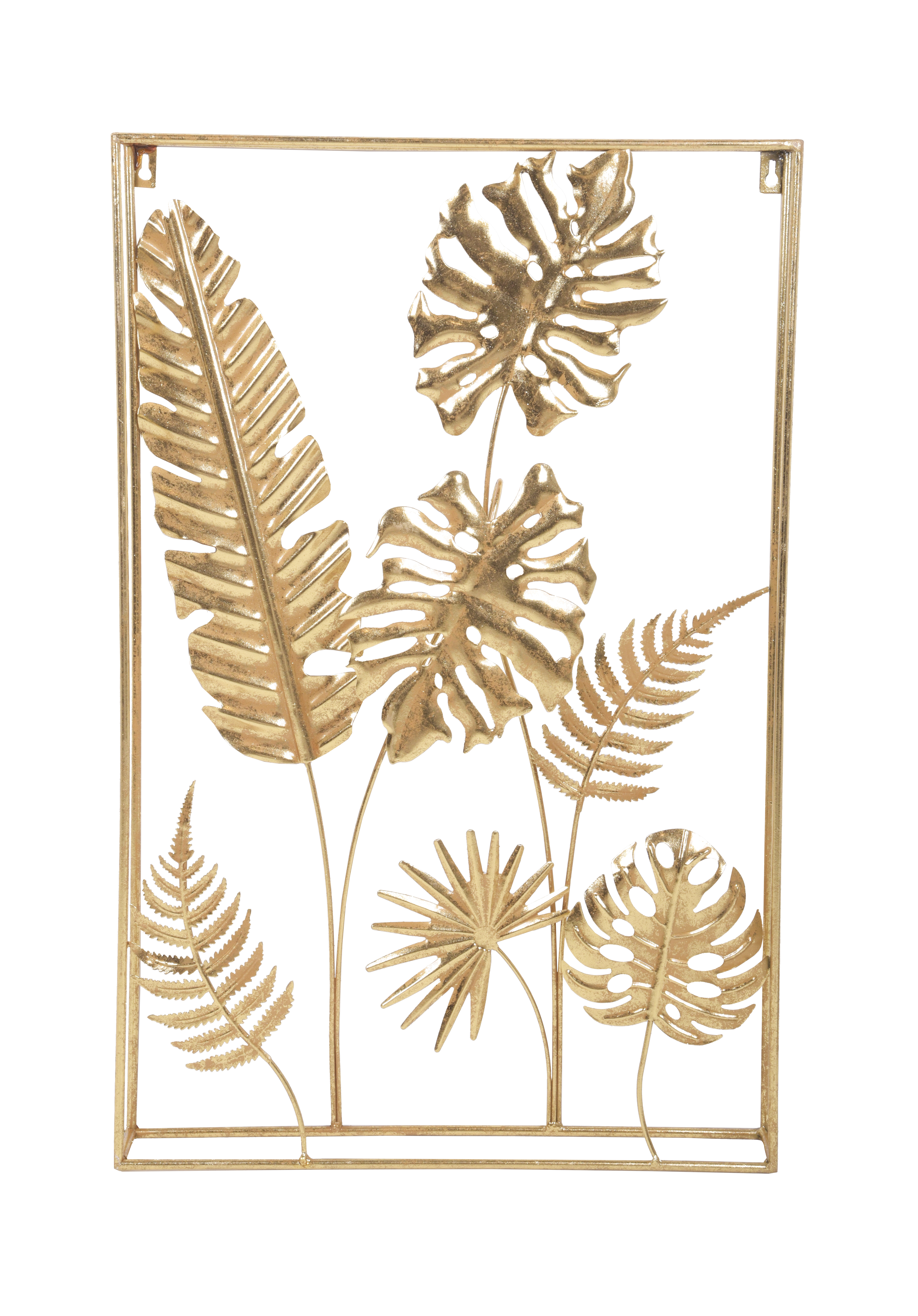 Die JUNGLE Wanddekoration besteht aus mehreren kunstvoll gestalteten Elementen, die harmonisch miteinander verbunden sind und an Ihrer Wand angebracht werden können. Das goldene Metall verleiht ihr eine glamouröse und zeitgemäße Ästhetik.