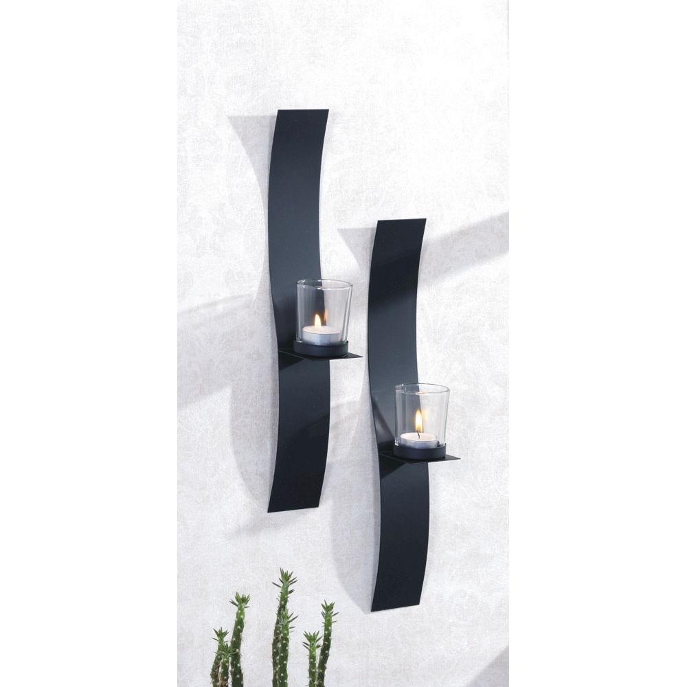 Dies elegante 2er-Set Wandkerzenhalter aus schwarzem Metall und Glas verleiht Ihrem Zuhause eine stilvolle und romantische Atmosphäre.