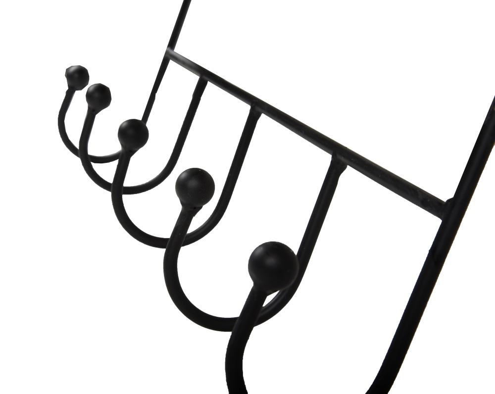 Das Regal verfügt über fünf Haken, die ideal zum Aufhängen von Jacken, Mänteln, Schals oder anderen Accessoires sind.