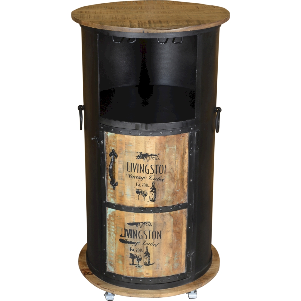 Der Artikel ist aus schwarzem Stahl (pulverbeschichtet) hergestellt und die Türen (mit Aufdruck: LIVINGSTON – Vintage Label) sowie die Top & Bodenplatte sind aus massivem recyceltem Mangoholz.