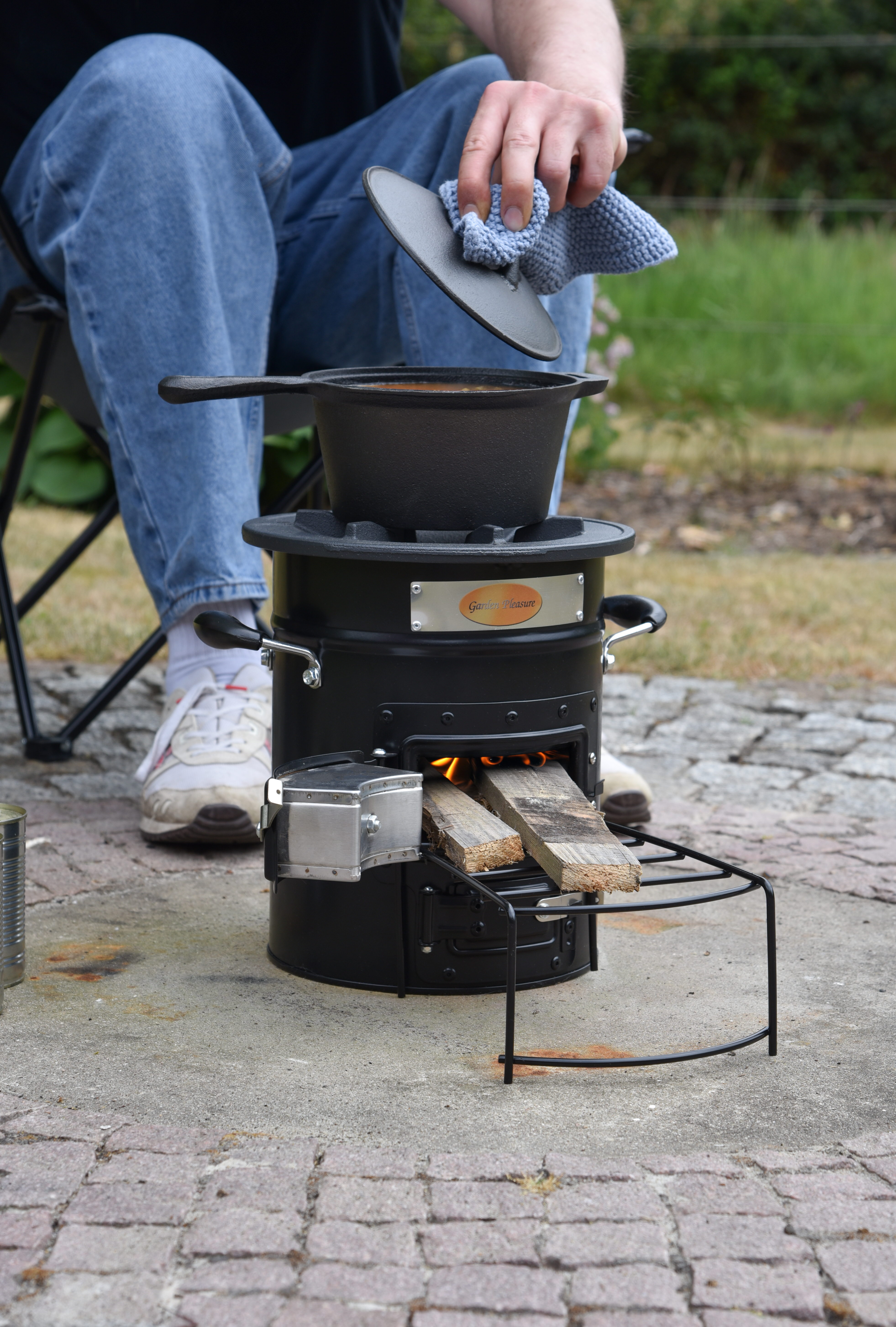 Der Raketenofen für unterwegs ist ein praktischer Holzofen aus Edelstahl, Gusseisen und Keramik. Er bietet eine mobile Möglichkeit, um Wärme zu erzeugen, ideal für Outdoor-Aktivitäten und Camping. Das kompakte Design und die robusten Materialien machen ihn besonders langlebig und effizient. Der Ofen lässt sich einfach transportieren und ist ein perfekter Begleiter für verschiedene Abenteuer im Freien.
