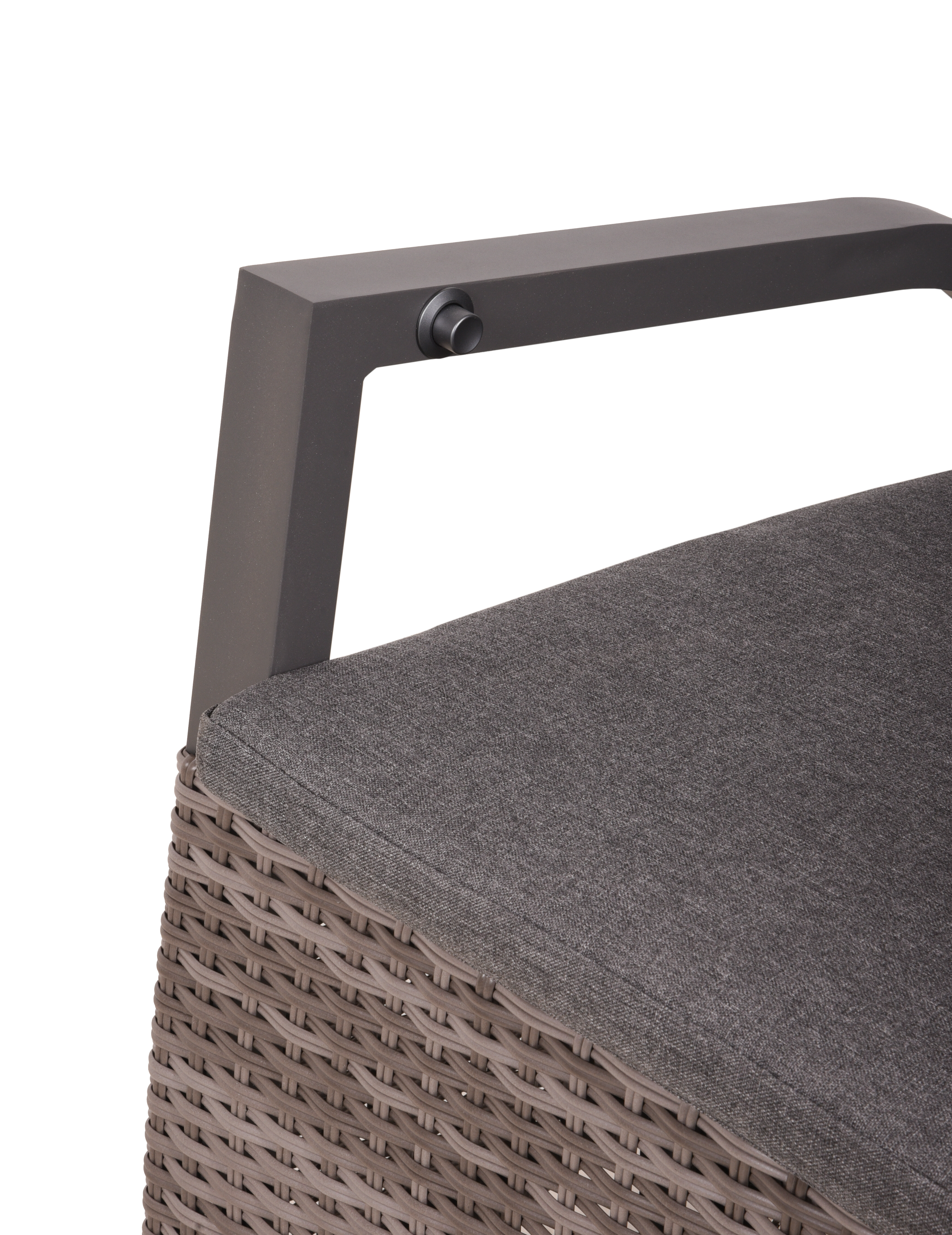 Dieser Hochlehner ist die ideale Wahl für alle, die Komfort und modernes Design in ihrem Garten oder auf der Terrasse schätzen. Mit seinem stabilen Aluminiumgestell in Anthrazit und dem hochwertigen, pflegeleichten Kunststoffgeflecht in Grau kombiniert der RANA zeitlose Eleganz mit praktischer Langlebigkeit.