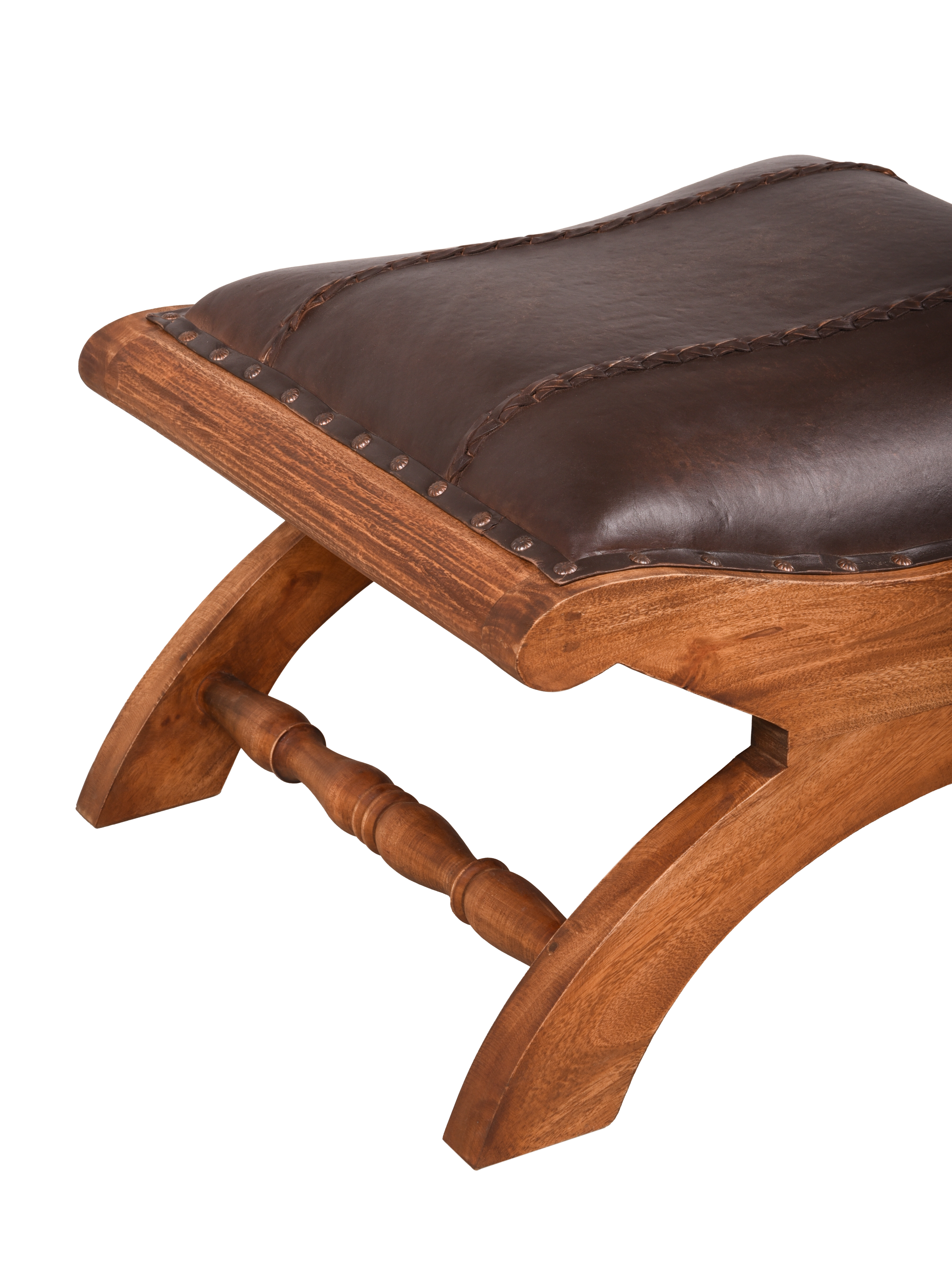 Der Ledersessel mit Hocker Bahia zeichnet sich durch eine hochwertige Verarbeitung aus Mahagoniholz und Leder aus. Die Kombination aus einem eleganten natürlichen Finish und einem antiken Look verleiht diesem Möbelstück eine zeitlose Schönheit. Der Sessel sorgt für Komfort und Stil und ist ein ausgezeichnetes Möbelstück für jedes Wohnzimmer oder Büro. Der passende Hocker rundet das Set ab und bietet zusätzlichen Komfort.