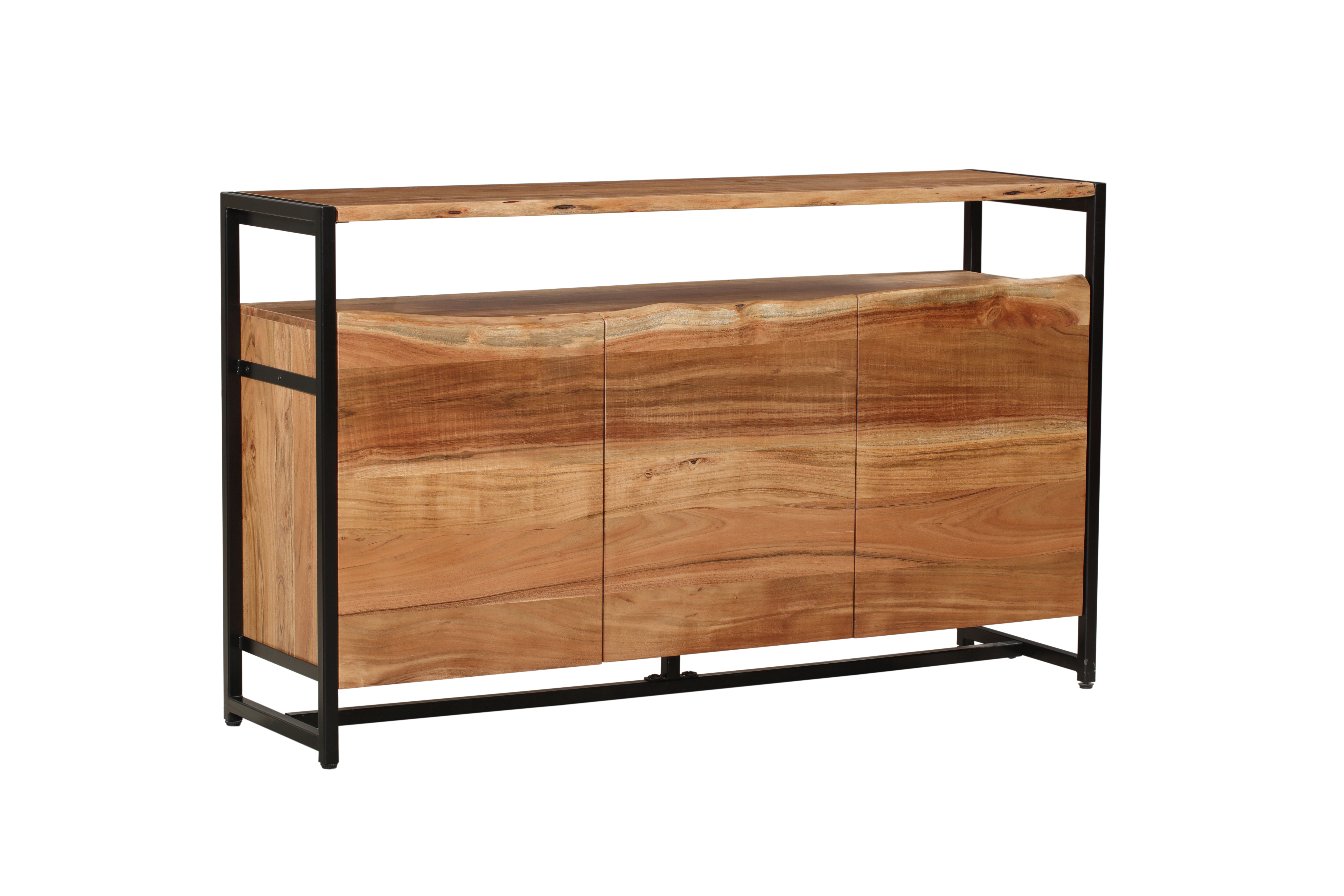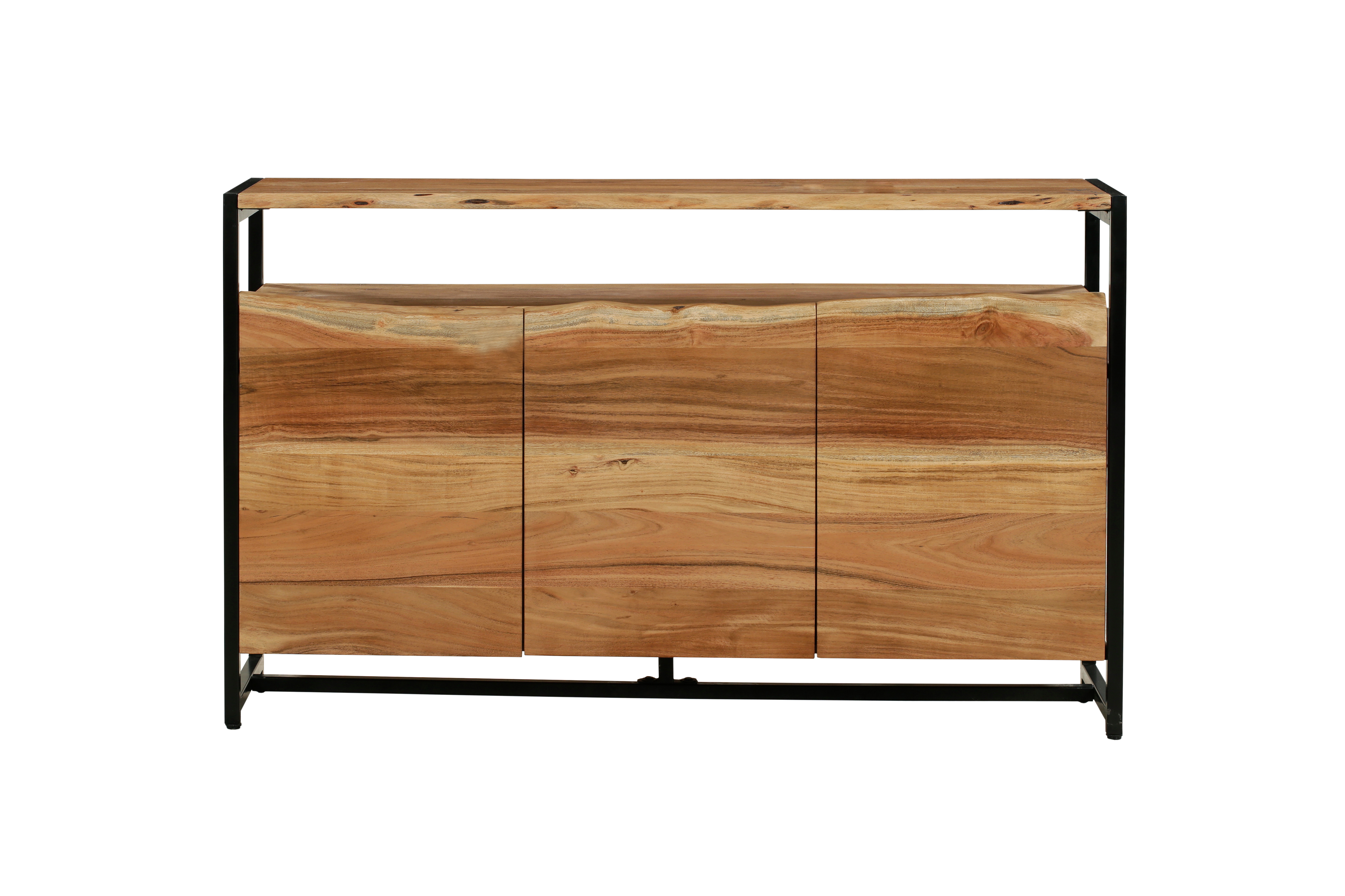 Das Sideboard MALA besticht durch eine Kombination aus Akazienholz und schwarzem, pulverbeschichtetem Eisen. Mit seinem natürlichen Holzfinish und der robusten Stahlstruktur eignet es sich ideal als funktionales und stilvolles Möbelstück für verschiedene Wohnräume. Die schlichte Eleganz und die hohe Qualität der Materialien machen das Sideboard zu einem vielseitigen Highlight in Ihrem Zuhause.