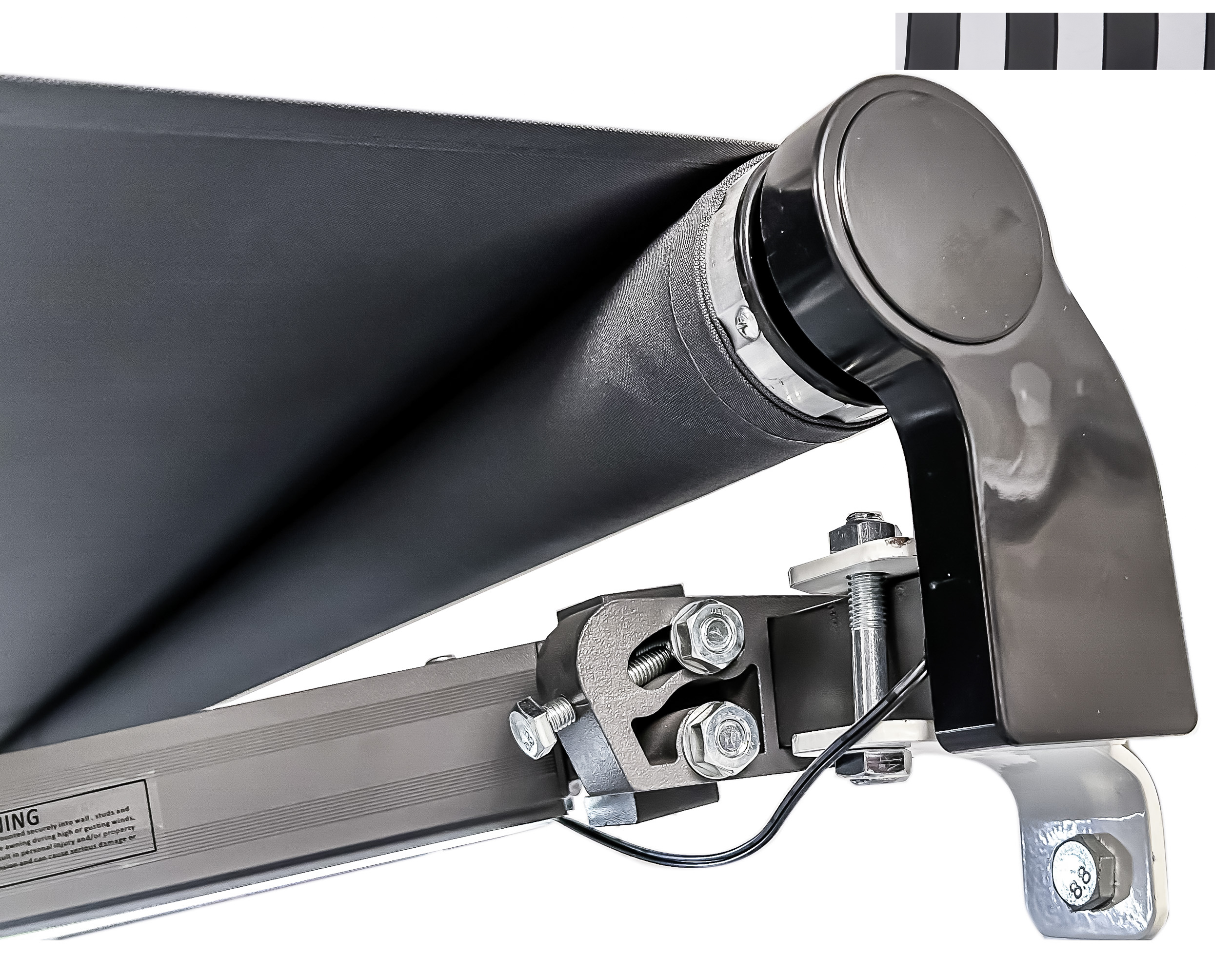 Elektrische Gelenkarmmarkise 295x200 cm, mit LED Beleuchtung, motorisiert, hellgrau-weiß gestreift