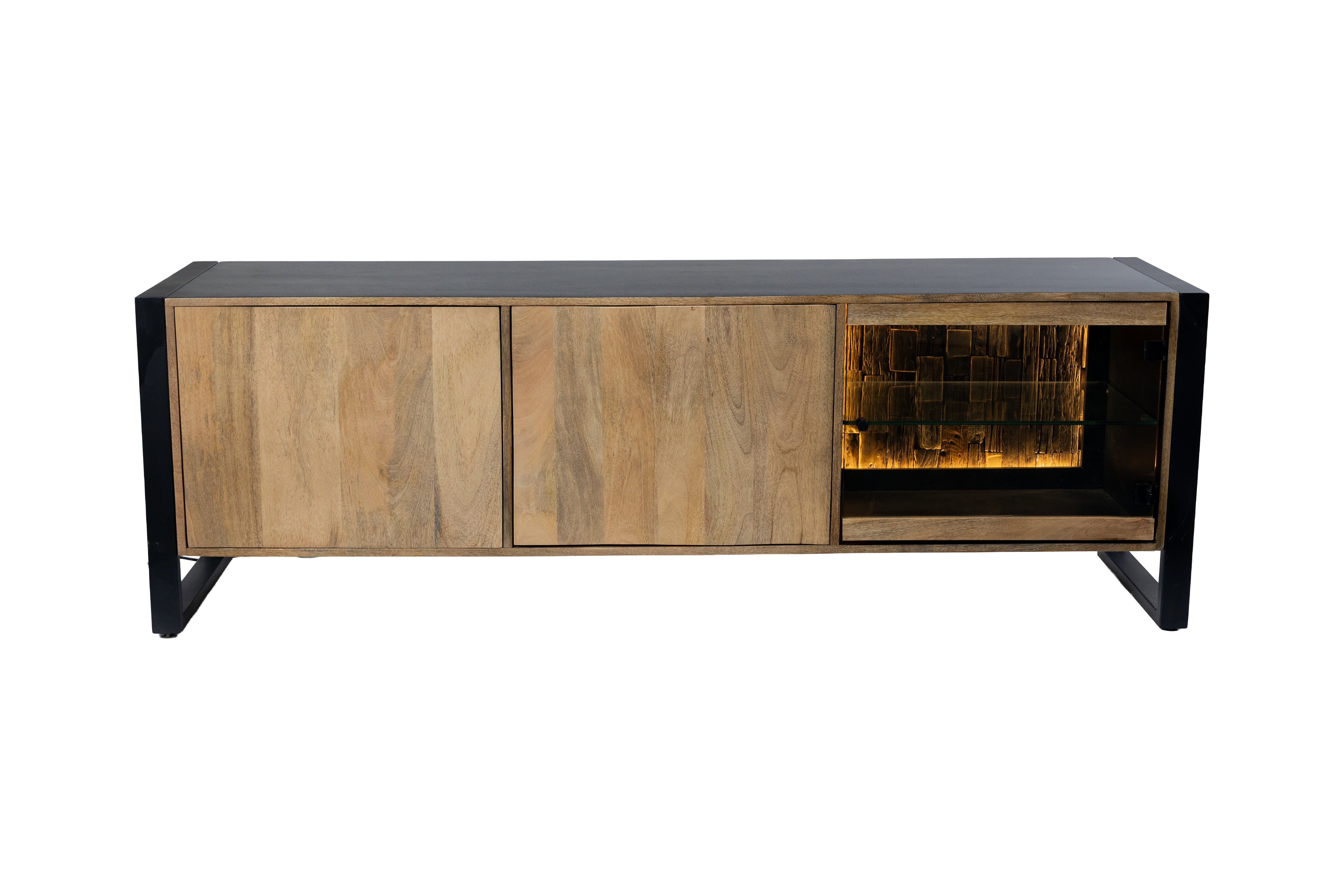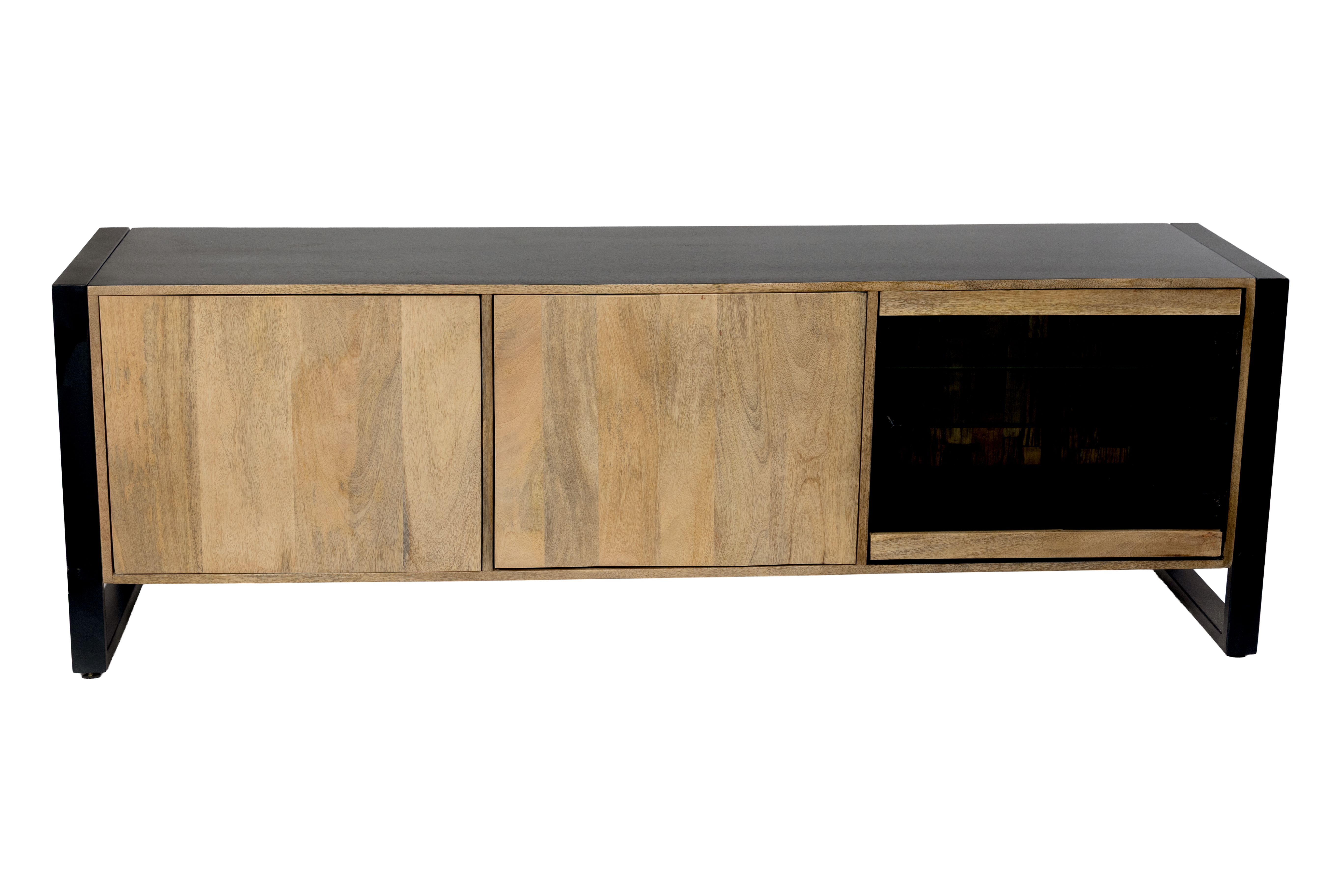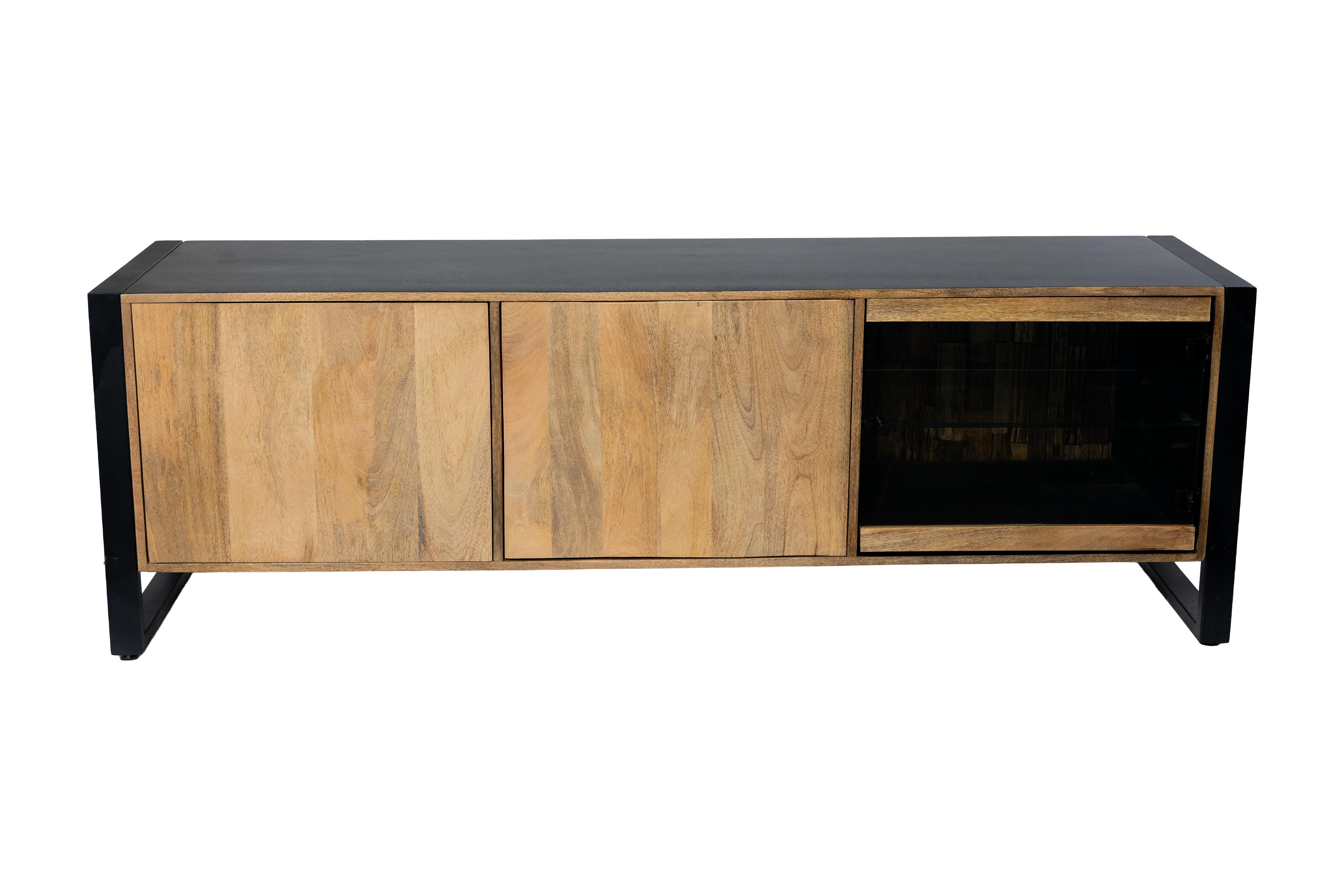 Holz: Mango , Oberfläche: lackiert , Farbe: Schwarz Matt, Honig Glas / Keramik: Glass Tür , Farbe: Natural
