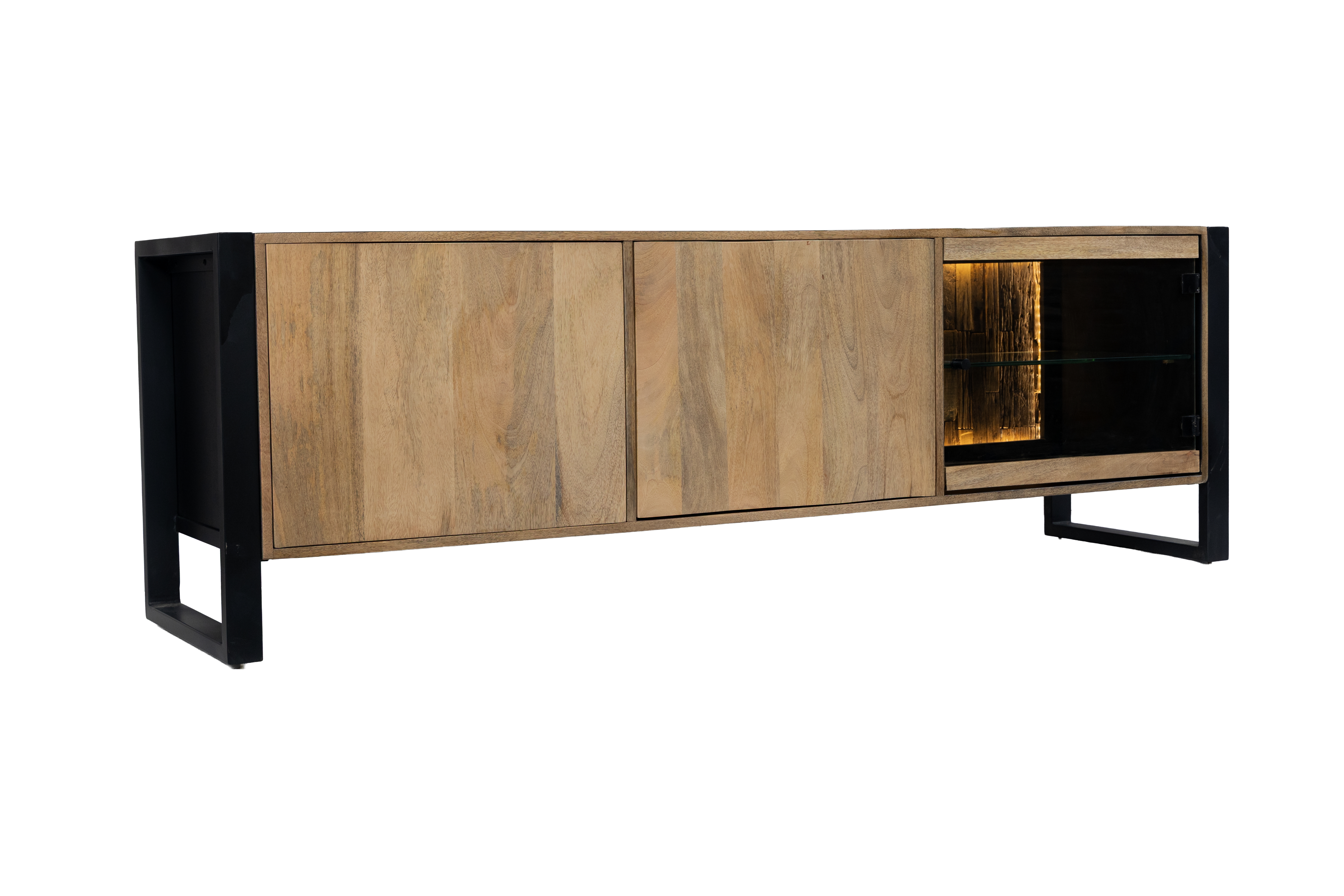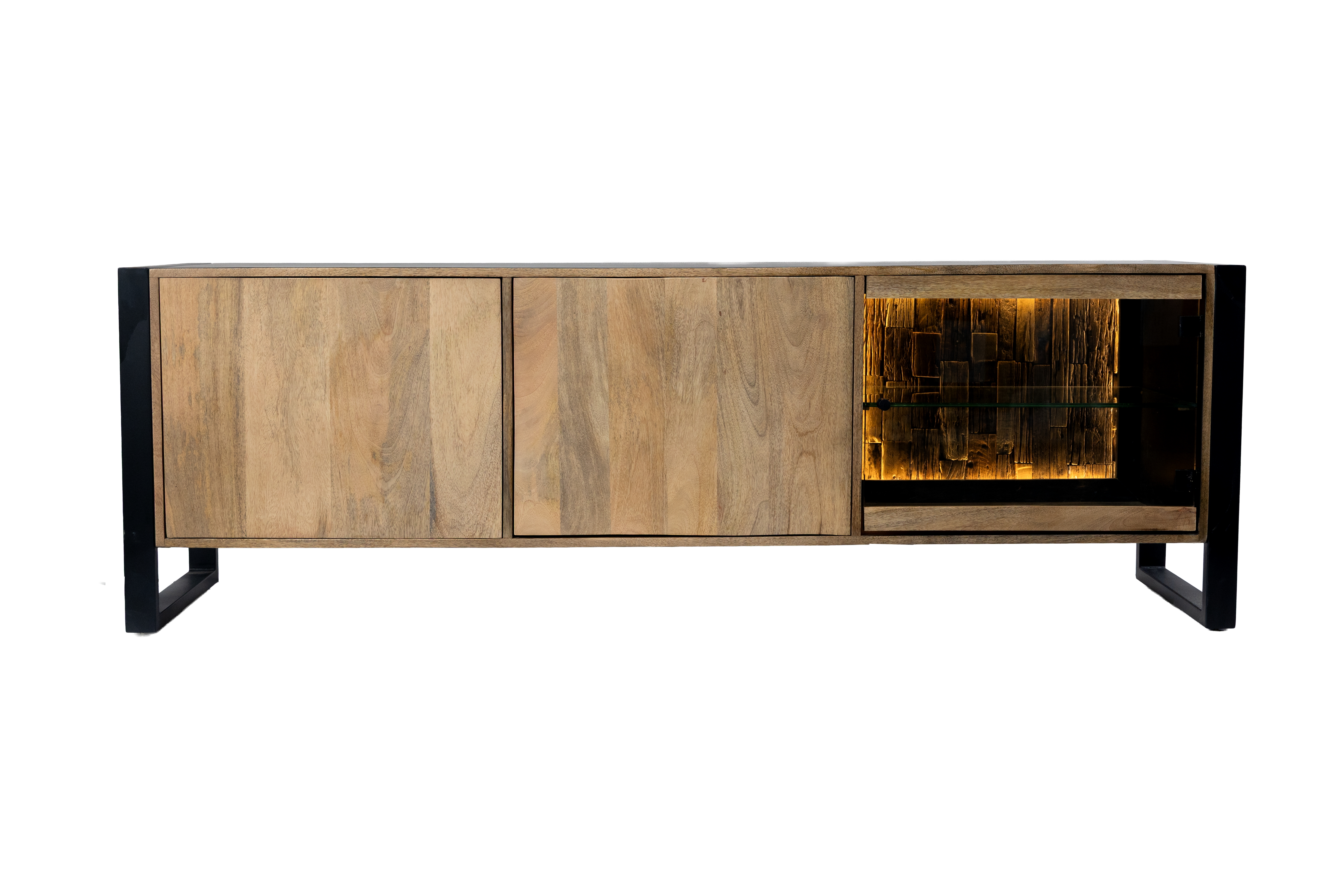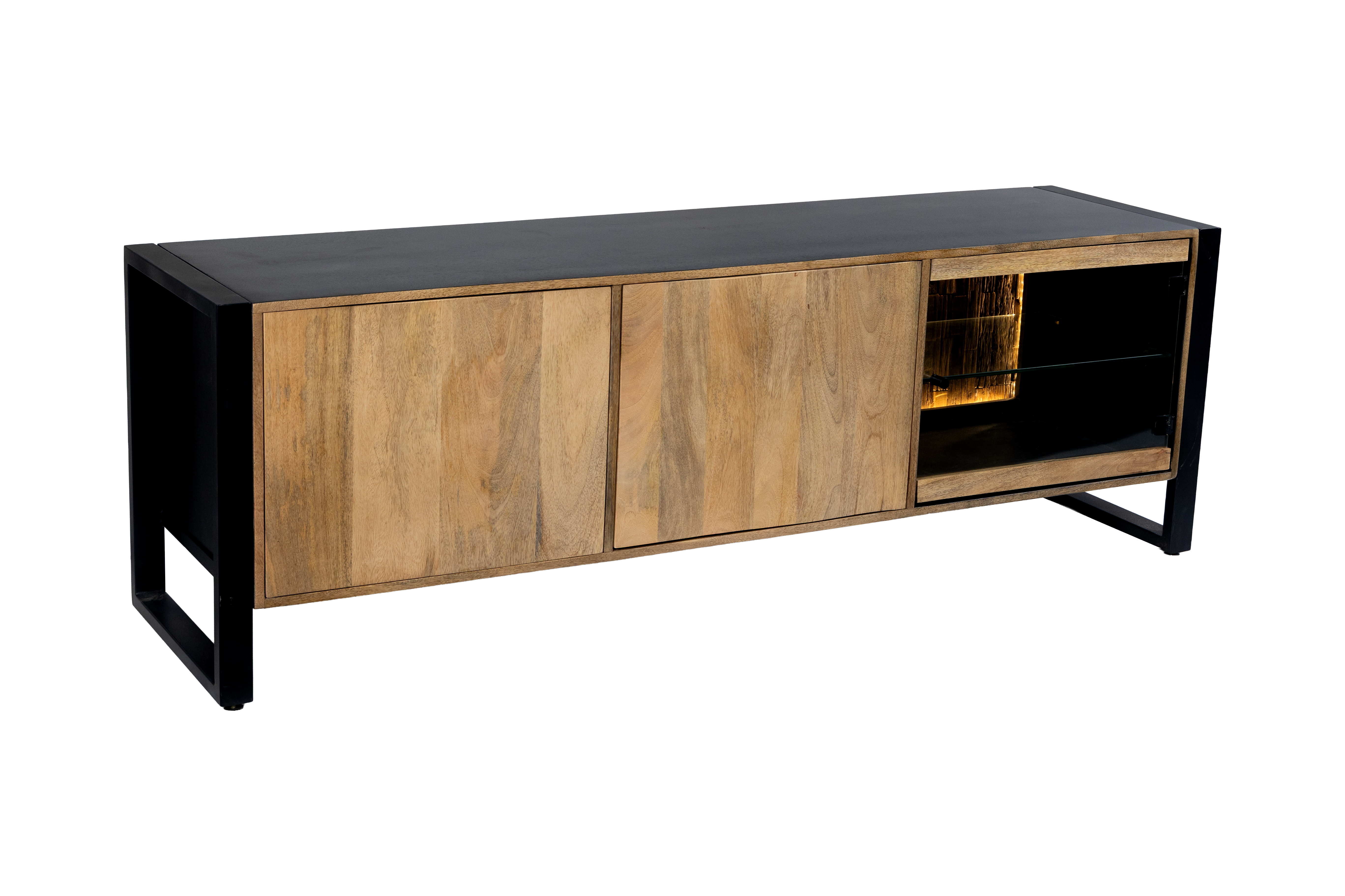 Holz: Mango , Oberfläche: lackiert , Farbe: Schwarz Matt, Honig Glas / Keramik: Glass Tür , Farbe: Natural