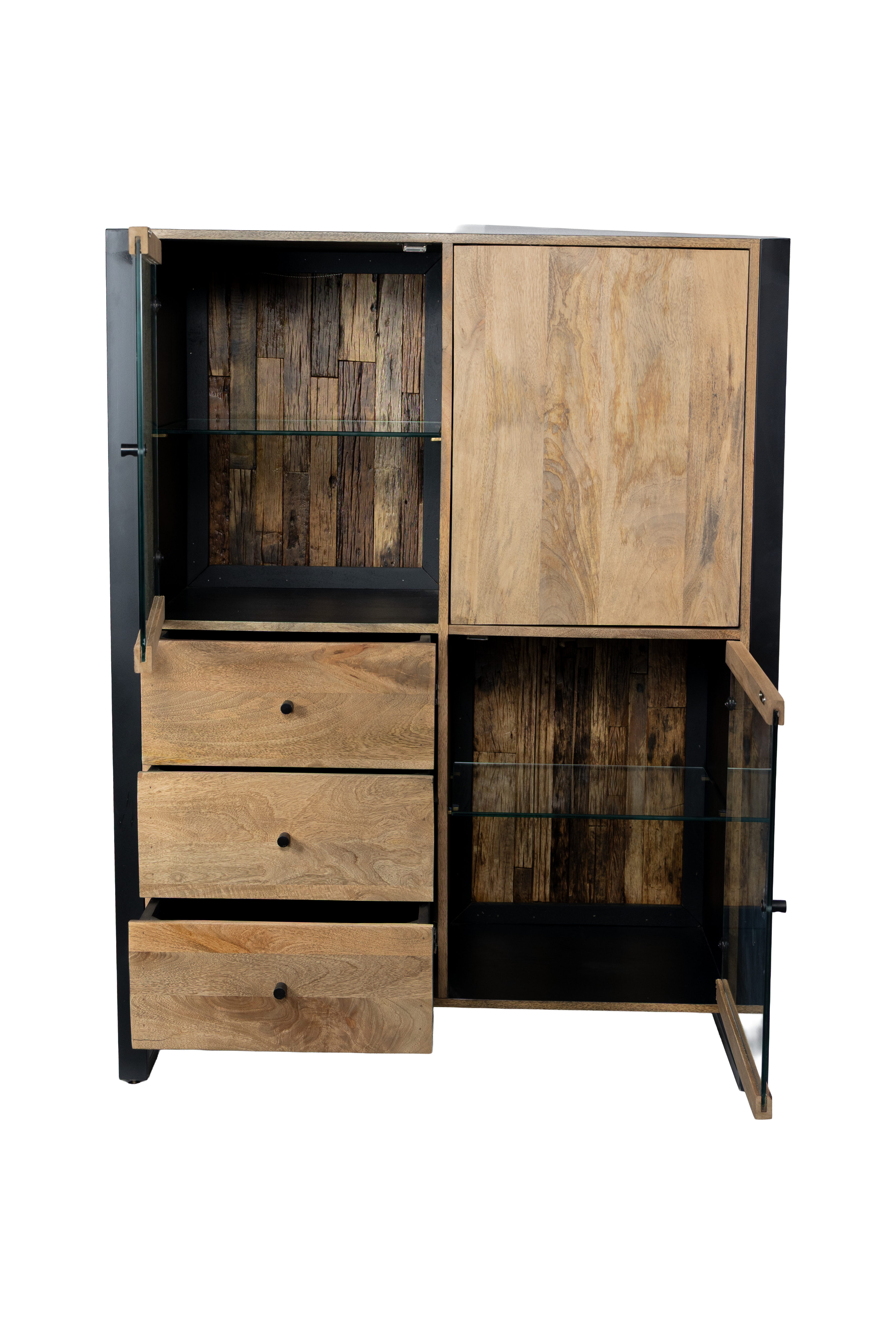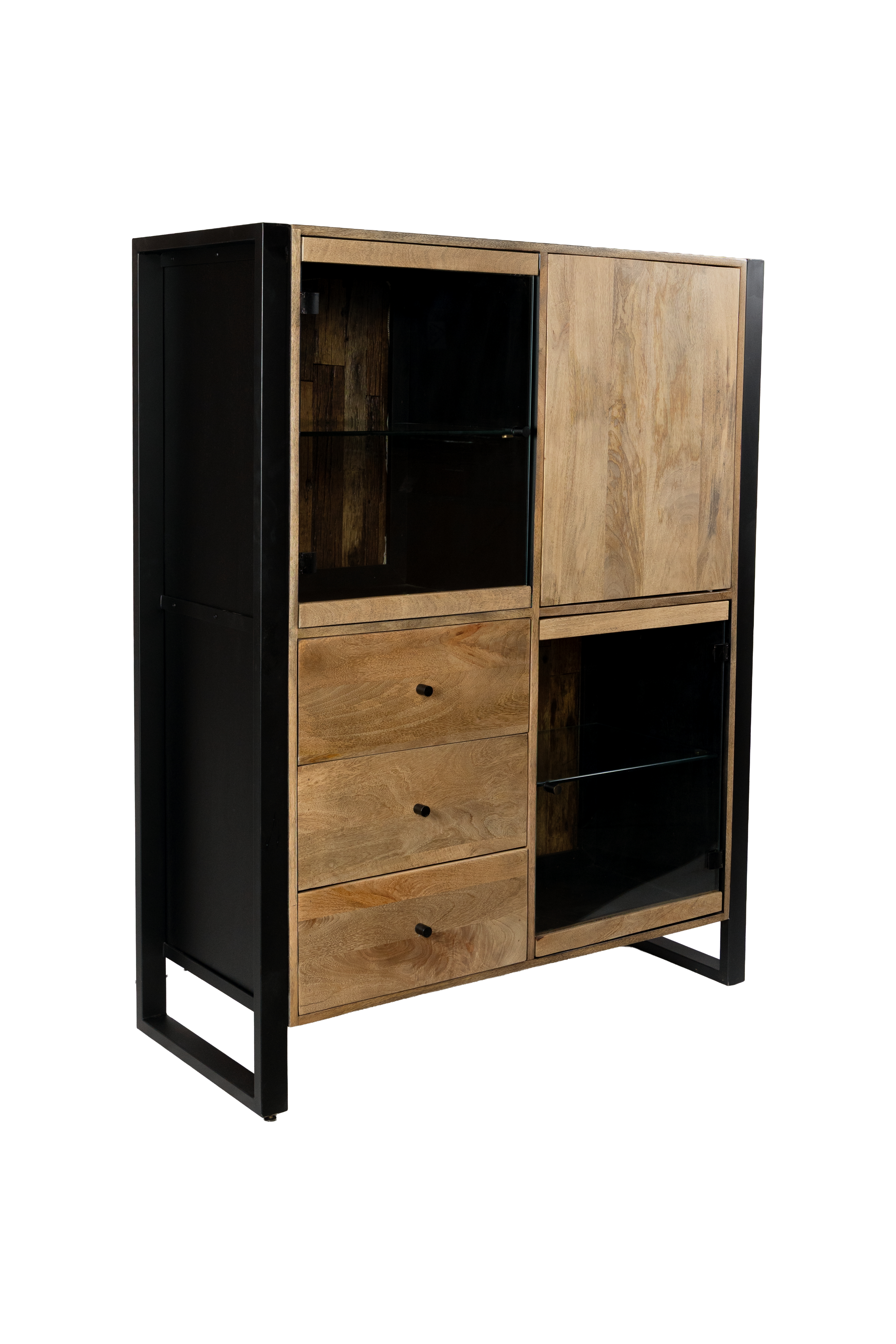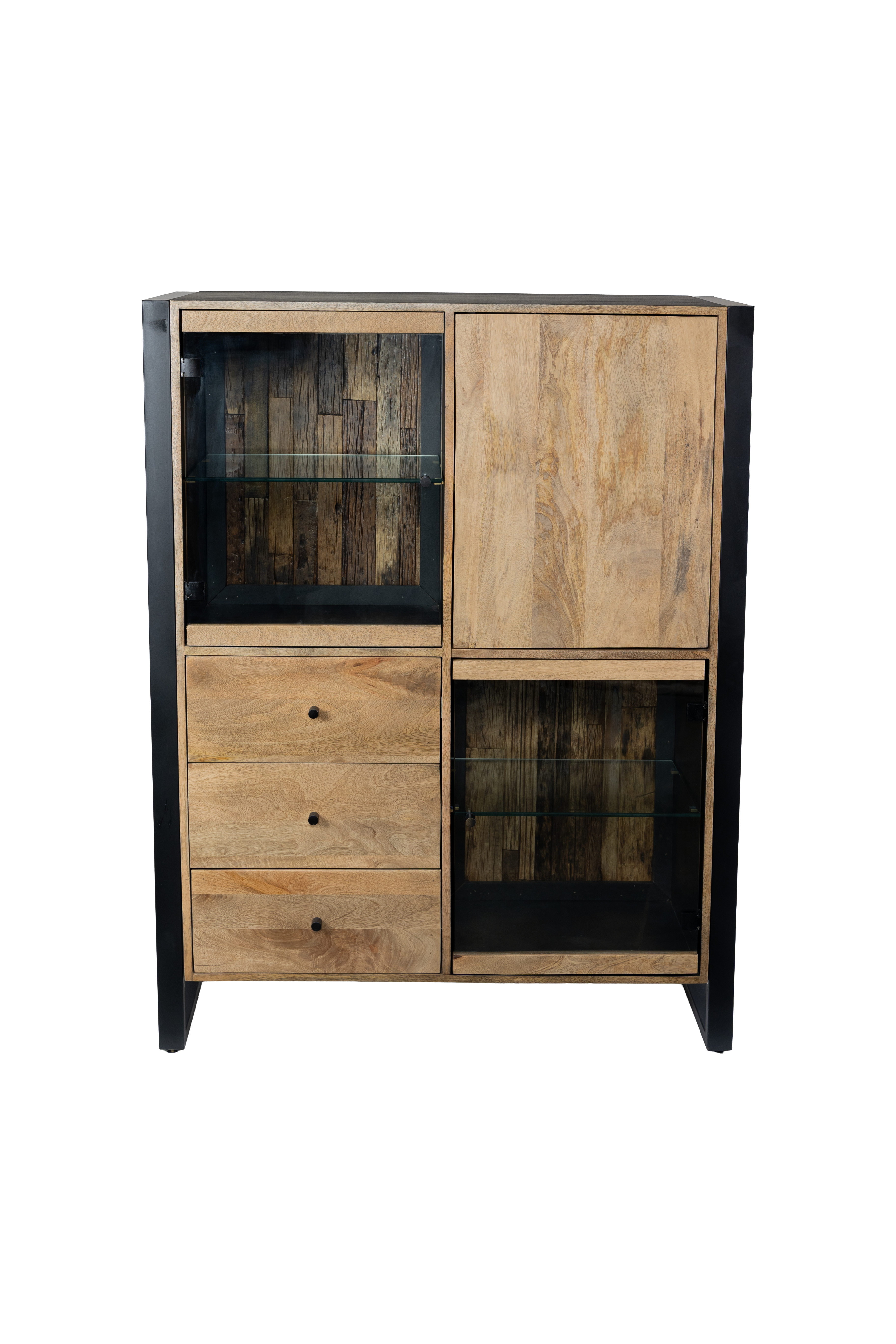 Holz: Mango , Oberfläche: lackiert , Farbe: Schwarz Matt, Honig Glas / Keramik: Glass Tür , Farbe: Natural