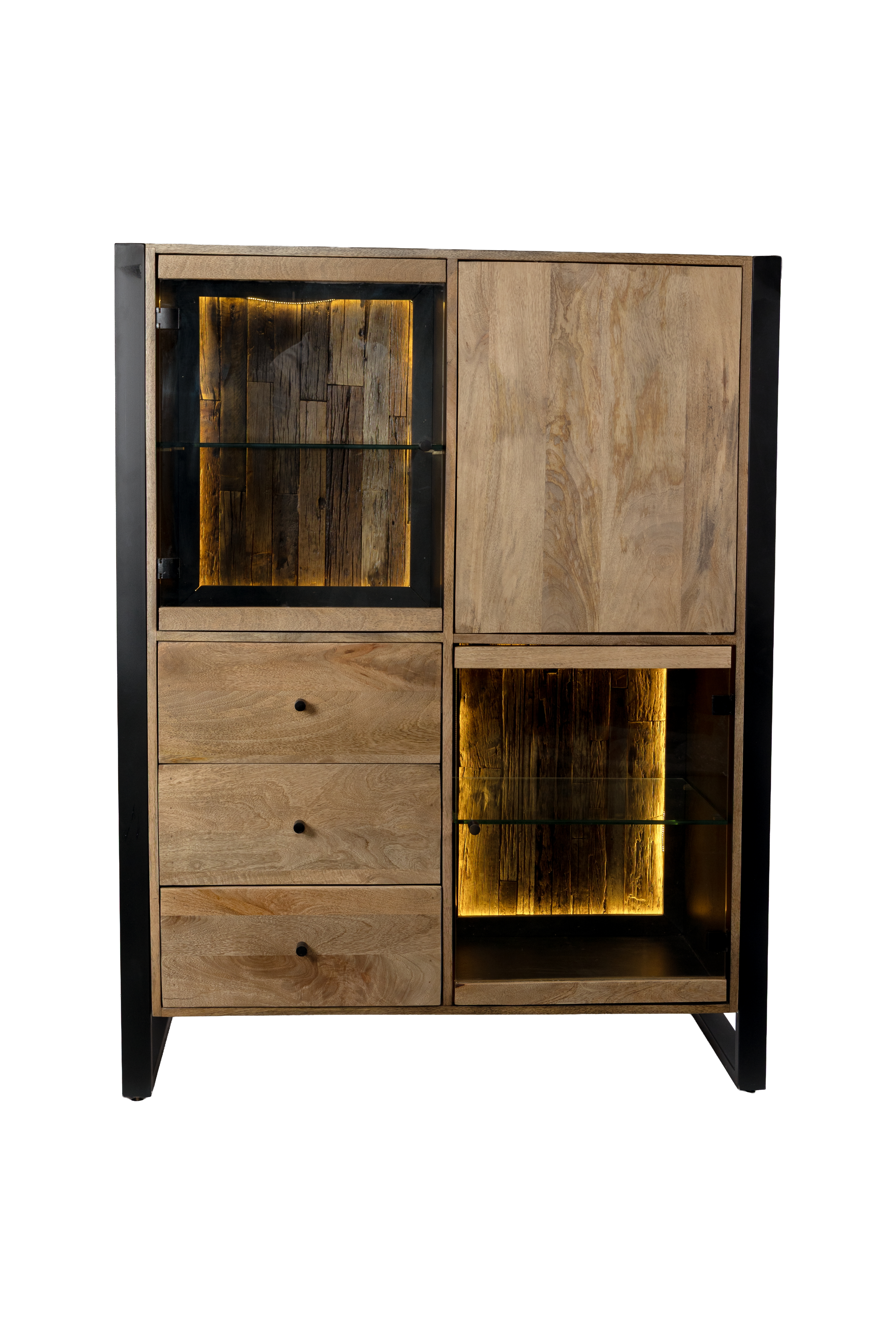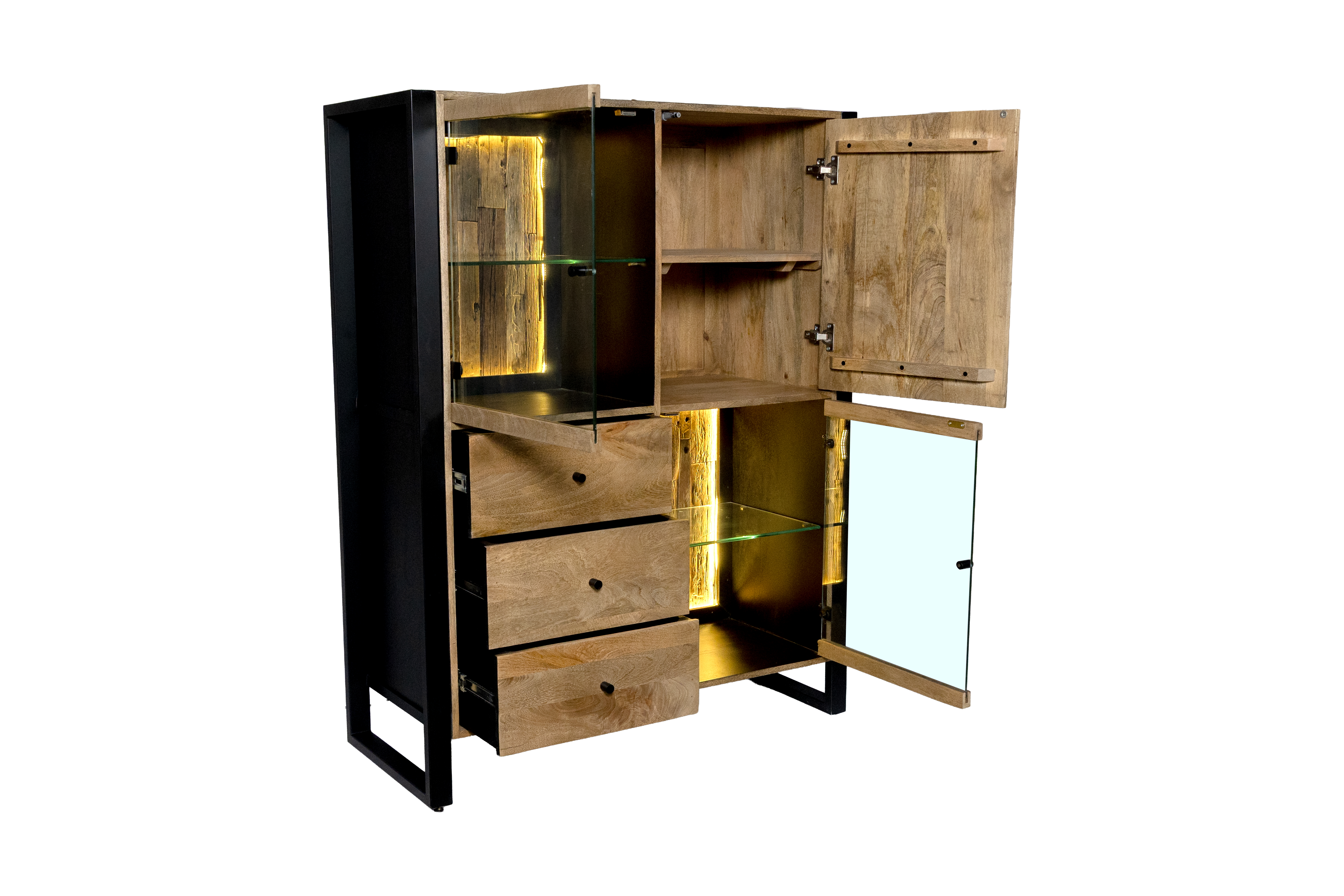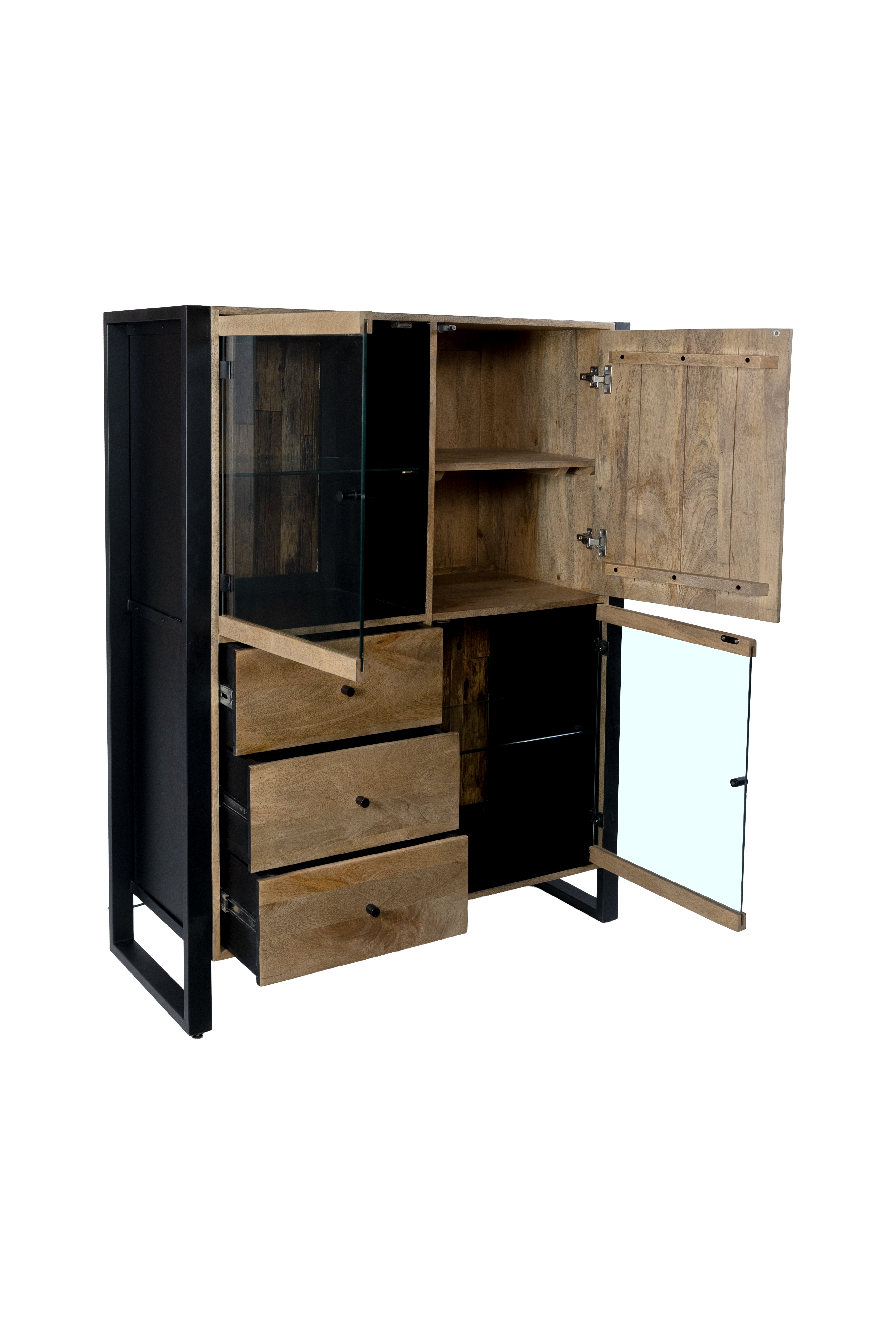 Holz: Mango , Oberfläche: lackiert , Farbe: Schwarz Matt, Honig Glas / Keramik: Glass Tür , Farbe: Natural