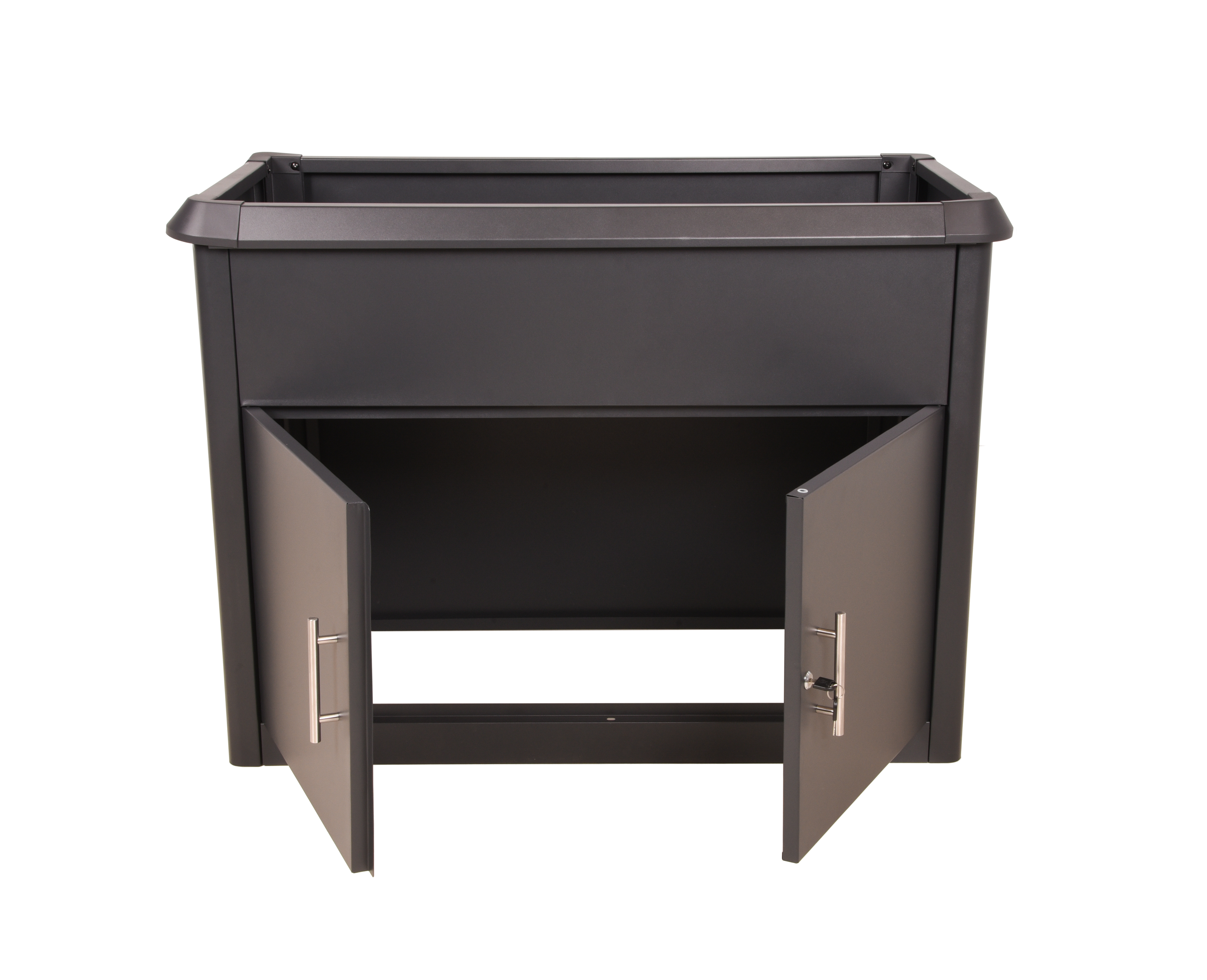 Mit dem Hochbeet ZINNIA bringen Sie stilvolle Gartenfreude auf Balkon, Terrasse oder in den Garten: Das anthrazitfarbene, galvanisierte und pulverbeschichtete Stahlbeet ist robust, wetterfest und misst 107 × 57 × 78 cm. Dank selbstbewässernder Pflanzschicht und schneckenabweisendem Rand gedeihen Kräuter, Gemüse und Blumen besonders komfortabel und geschützt. Überschüssiges Wasser kann über ein verschließbares Loch in der Bodenmitte ablaufen – der umschaltbare Abflussstopfen macht ZINNIA dabei sowohl für den Innen- als auch Außenbereich ideal. Unter der Pflanzfläche bietet der integrierte Schrank (Innenmaß 96 × 46,5 × 51 cm) mit verschließbarer Tür praktischen Stauraum für Erde, Werkzeug oder Gießkanne und trägt bis zu 35 kg. So ist ZINNIA die clevere All-in-one-Lösung für alle, die bequem, sauber und mit modernem Look gärtnern möchten.