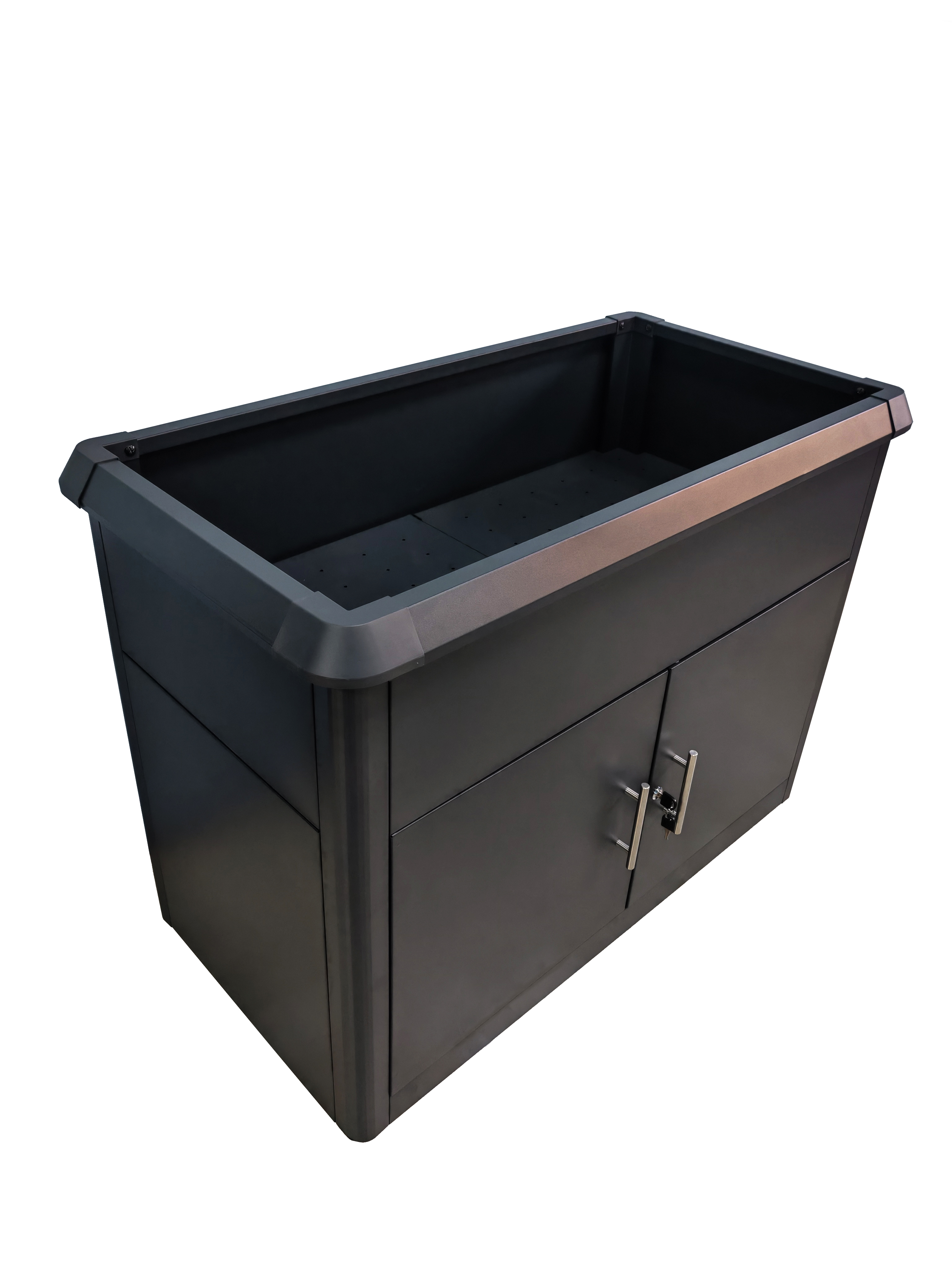 Infotext 3: mit umschaltbarem Abflussstopfen für den Innen- und Außenbereich und verschließbarer Tür