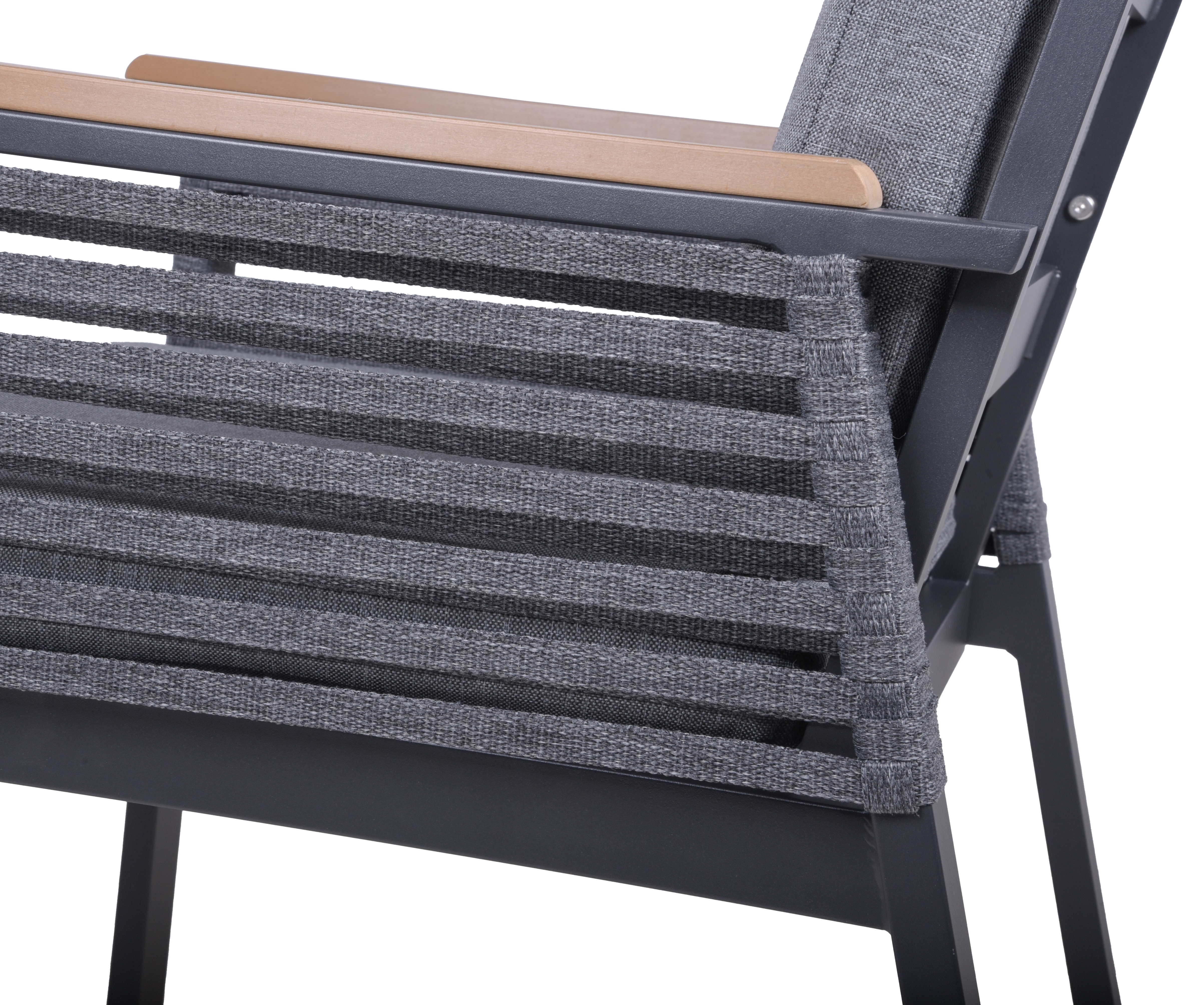 Der Tisch DENIA beeindruckt mit seinem schwarz pulverbeschichteten Aluminiumgestell und großzügigen Maßen von 160 cm Länge, 89,5 cm Breite und 75 cm Höhe. Er bietet ausreichend Platz für gesellige Zusammenkünfte und wird zum Mittelpunkt Ihres Außenbereichs.