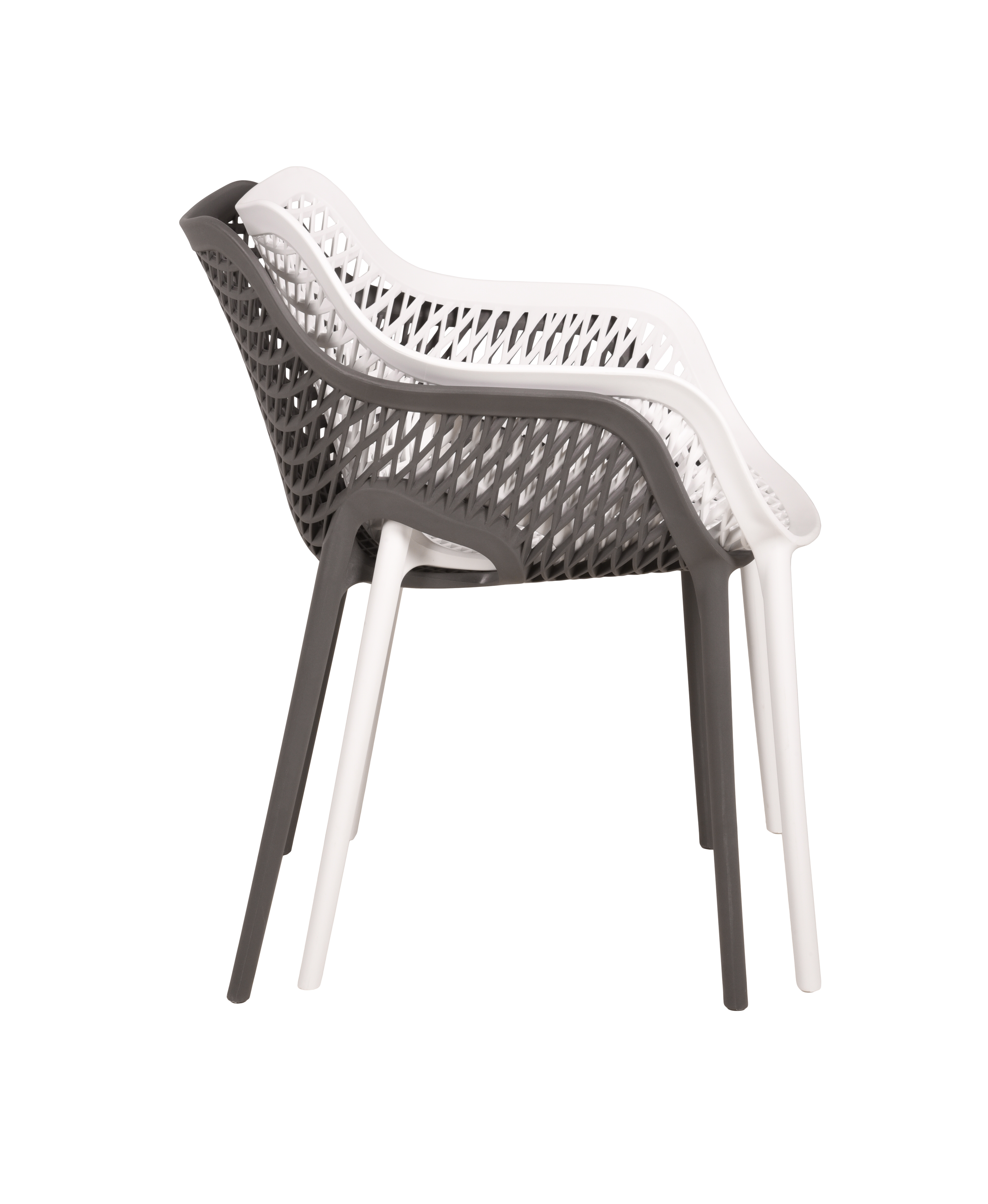 Die elegante anthrazitfarbene Gestaltung fügt sich harmonisch in verschiedene Wohn- und Gartenkonzepte ein. Praktisch im Alltag: Die Stühle sind stapelbar, wobei maximal 4 Stück platzsparend übereinander gestapelt werden können – ideal für flexible Nutzung und einfache Aufbewahrung.