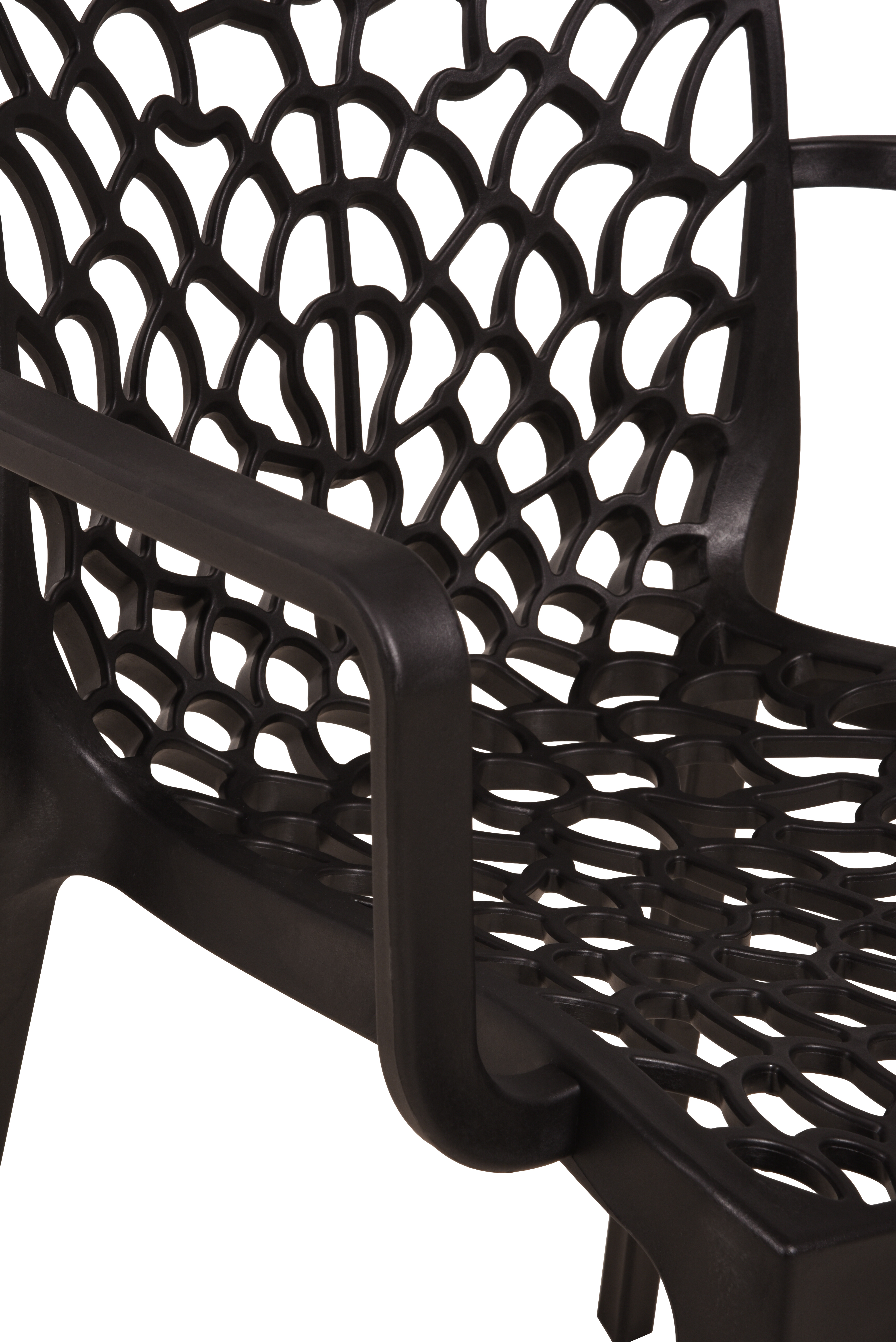 Das zeitlose Design in elegantem Schwarz fügt sich mühelos in unterschiedliche Wohn- und Gartenkonzepte ein. Praktisch im Alltag: Die Stühle sind stapelbar, wobei maximal 4 Stück platzsparend übereinander gestapelt werden können – ideal für eine flexible Nutzung und eine einfache Aufbewahrung.