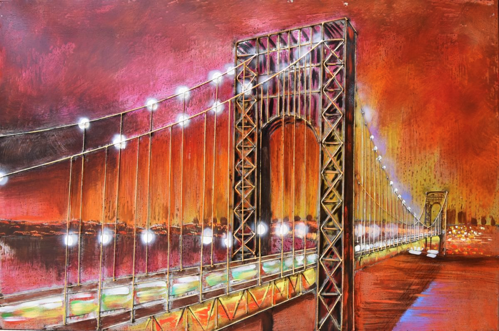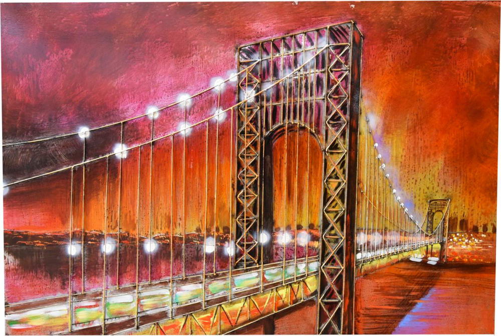 Das 3D Metallbild "Brücke" ist ein faszinierendes Kunstwerk aus buntem Stahl, das durch handgefertigte Malerei veredelt wurde.