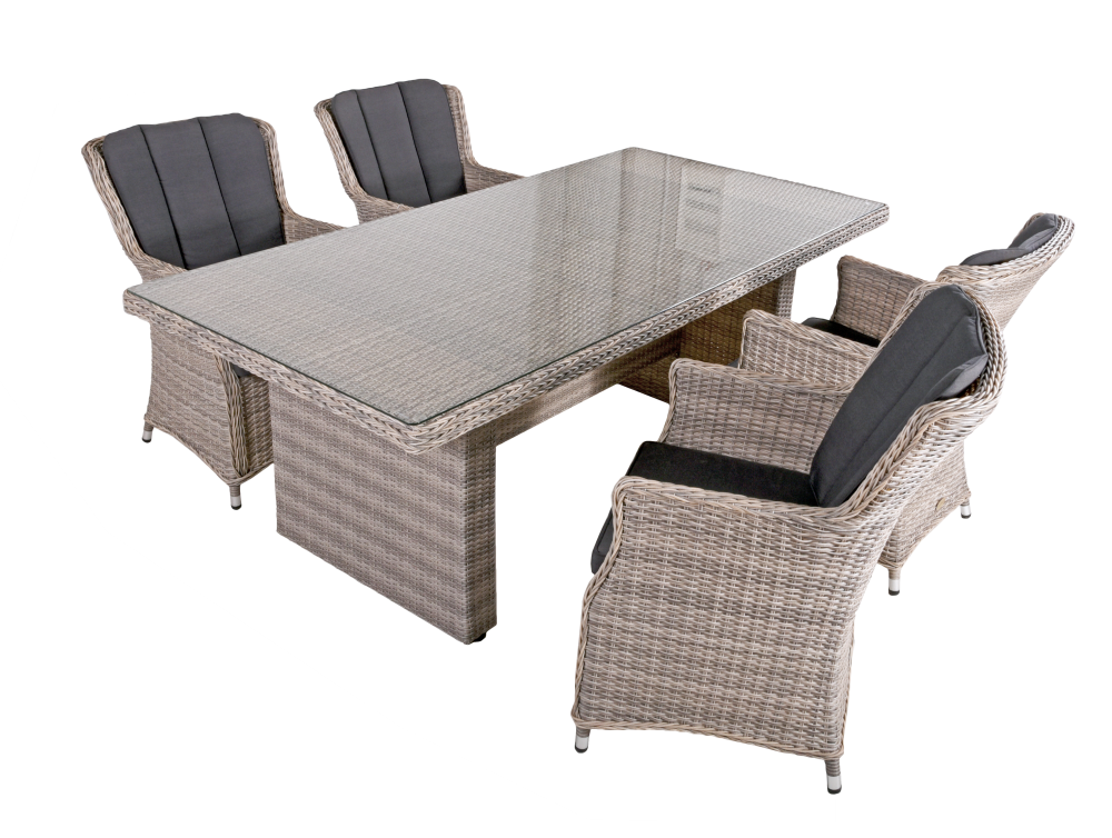 Das robuste Aluminiumgestell des GETAFE Armstuhls gewährleistet Stabilität und Langlebigkeit. Es ist leichtgewichtig und dennoch äußerst stabil, was eine einfache Handhabung und einen bequemen Transport ermöglicht. Das Kunststoffgeflecht in Dunkelgrau verleiht dem Stuhl ein zeitgemäßes Aussehen und verbindet sich harmonisch mit verschiedenen Einrichtungsstilen.