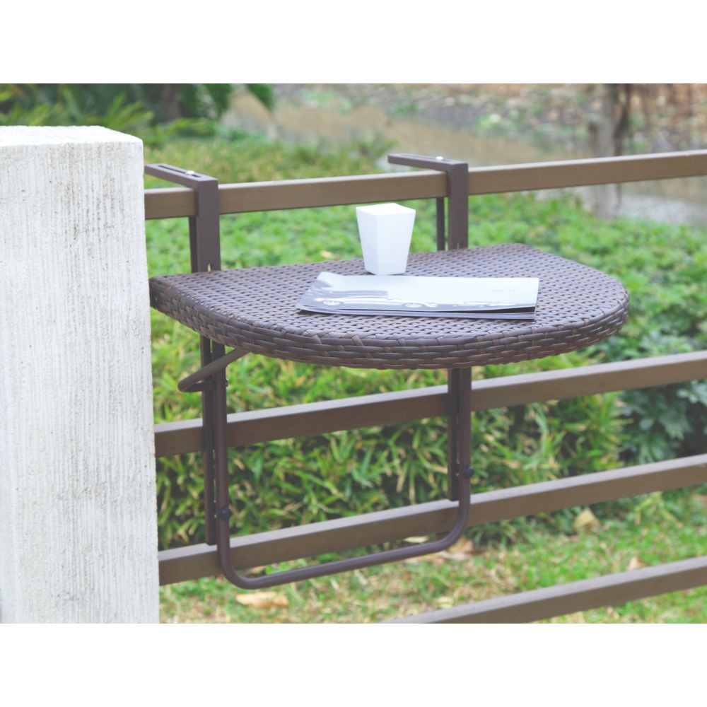 Der Balkon-Hängetisch AGRA ist eine clevere und platzsparende Lösung für Balkone und kleine Terrassen. Mit seinem Gestell aus hellgrauem Aluminium und der Tischplatte aus coffee-farbenem Kunststoffgeflecht bietet er nicht nur Funktionalität, sondern auch modernes Design.