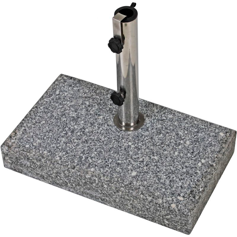 Hergestellt aus hochwertigem Granit und Edelstahl ist der Schirmständer langlebig und witterungsbeständig.