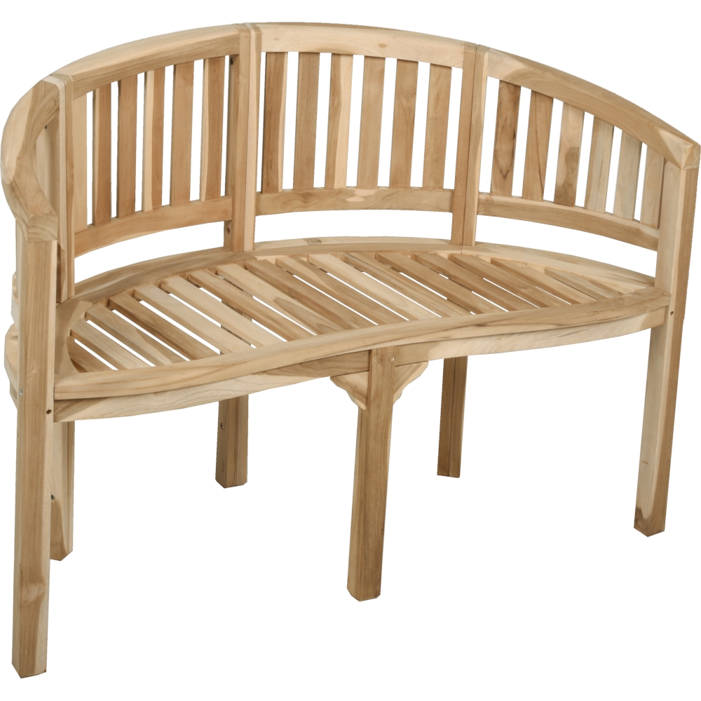 Die runde Rückenlehne der Bank AMBON ist ein besonderes Merkmal und verleiht dem Möbelstück einen einzigartigen Stil und eine elegante Optik. Sie bietet auch einen hervorragenden Komfort beim Sitzen und ermöglicht es Ihnen, sich entspannt zurückzulehnen und Ihre Umgebung zu genießen.