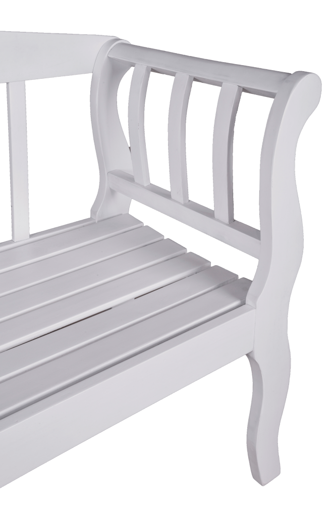 Der weiß-lackierte Eukalyptus verleiht der Bank eine moderne Ausstrahlung, die jeden Garten aufwertet.