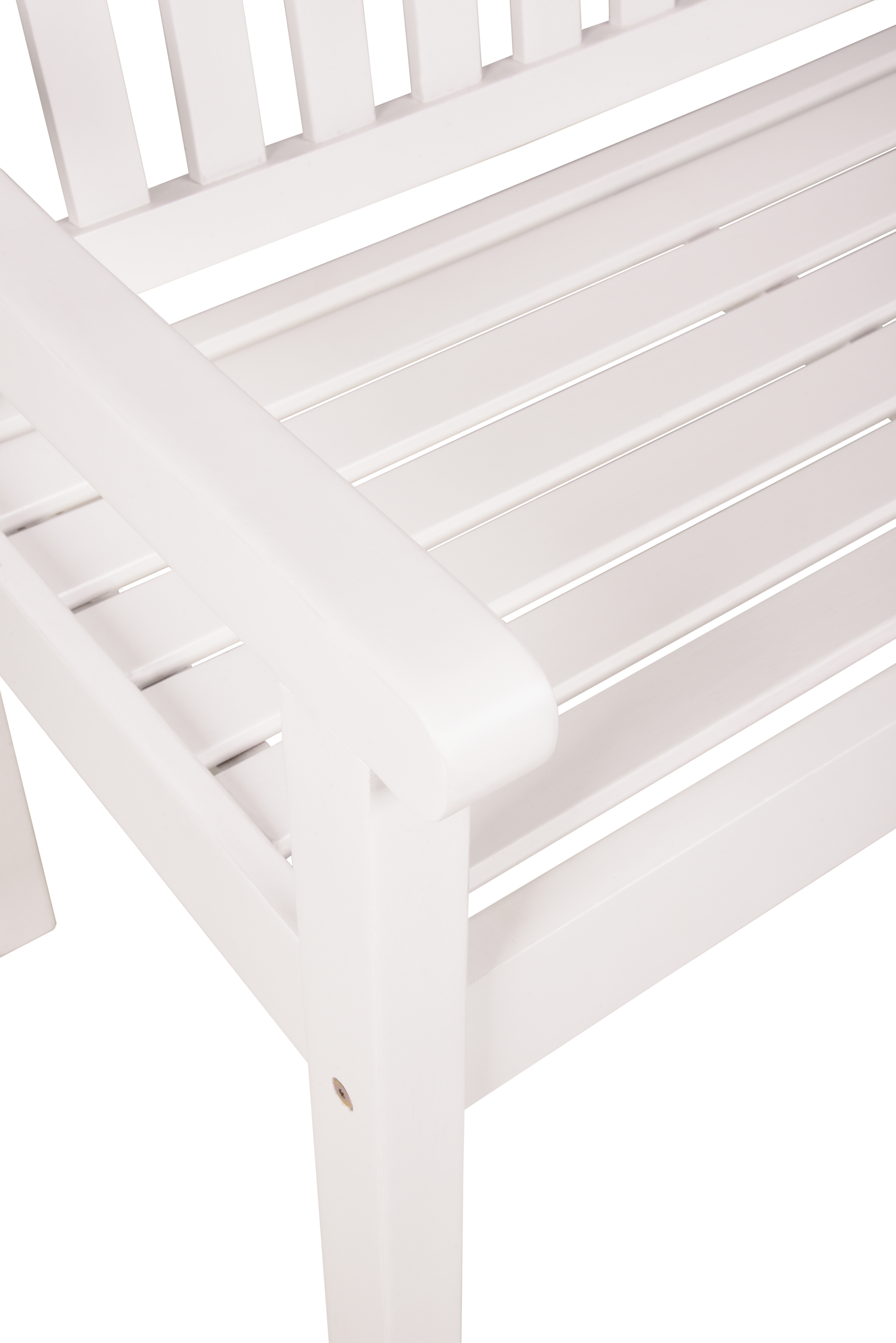 Der weiß-lackierte Eukalyptus verleiht der Bank eine moderne Ausstrahlung, die jeden Garten aufwertet.