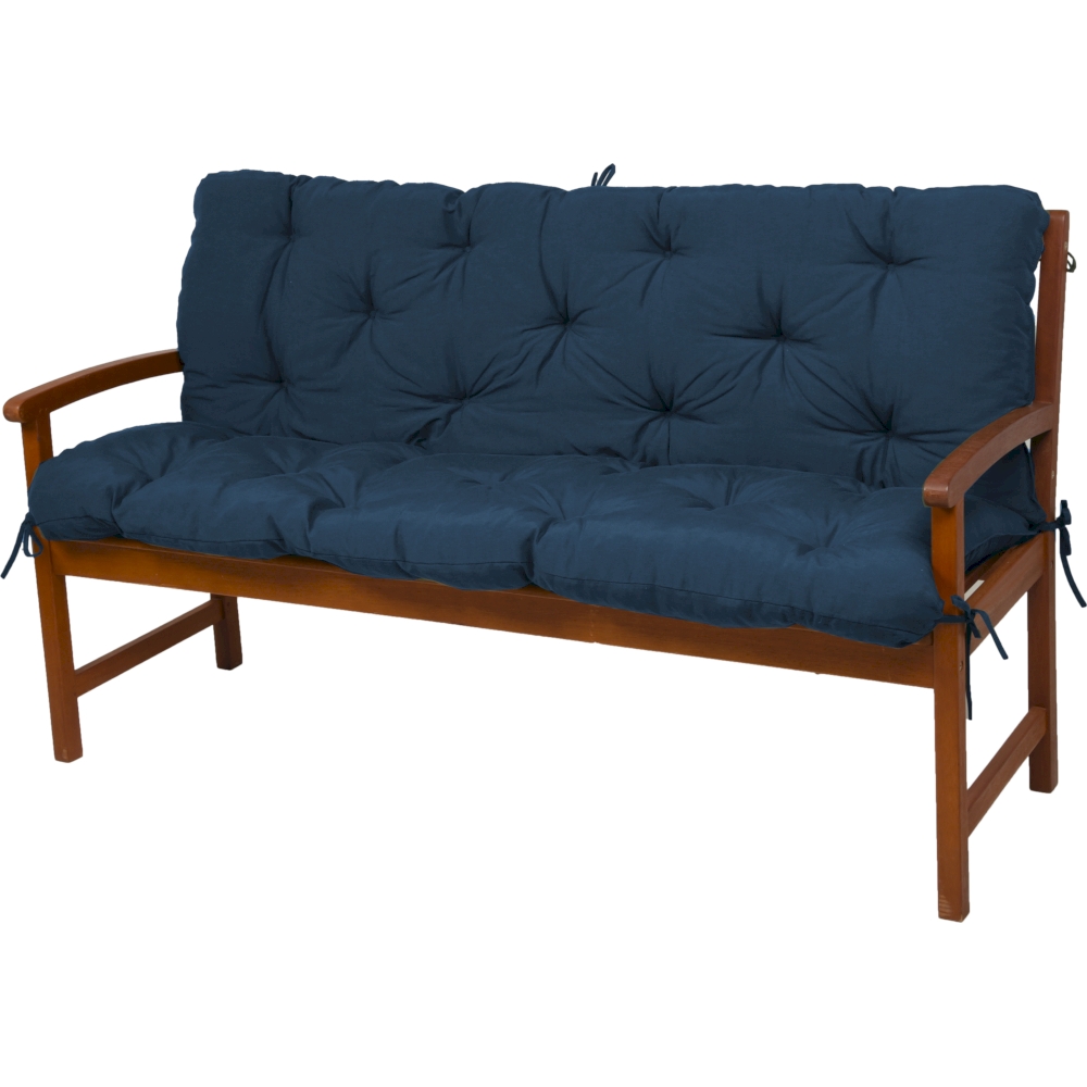 Jede der beiden Auflagen ist mit insgesamt 16 Kreisheftungen ausgestattet, die eine gleichmäßige Verteilung der Füllung gewährleisten und somit optimalen Sitzkomfort bieten. Darüber hinaus sind jeweils 6 Bindebänder an den Auflagen angebracht, je 2 oben, in der Mitte und unten. Diese Bindebänder gewährleisten, dass die Auflagen sicher und rutschfest auf Ihrer Bank befestigt werden können.