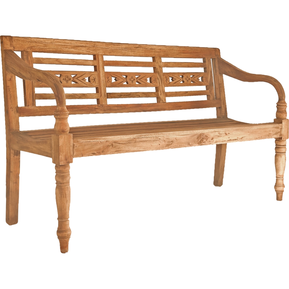 Zusammenfassend bietet die 3-Sitzer Bank MOYO in natur-antik Optik eine stilvolle Optik und eine komfortable Sitzgelegenheit für bis zu drei Personen. Das hochwertige Mahagoniholz und die natur-antike Oberflächenbehandlung machen diese Bank zu einem zeitlosen Möbelstück, das Ihrem Zuhause eine warme Atmosphäre verleiht.