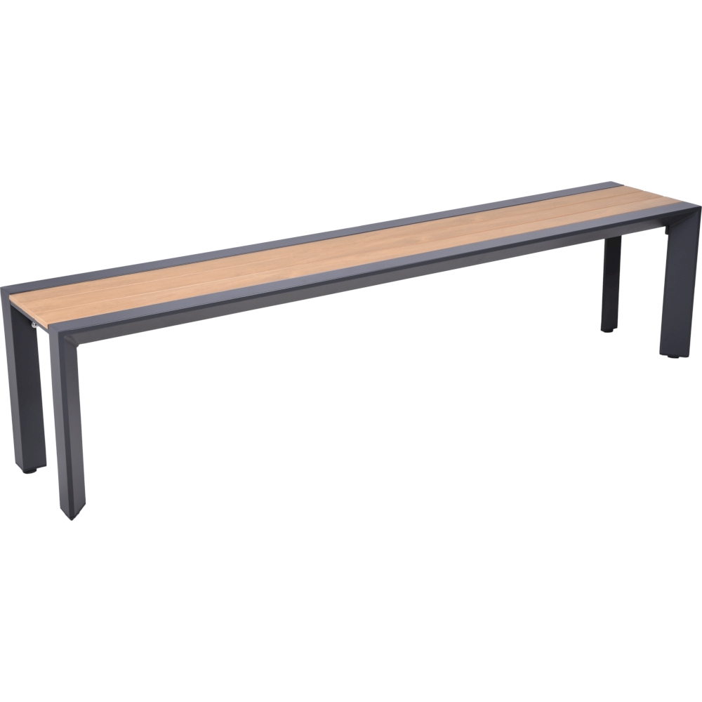 Das Non-Wood-Material verleiht der Bank ein ansprechendes Holzoptik-Finish, ohne dabei auf die Vorteile von Aluminium zu verzichten.